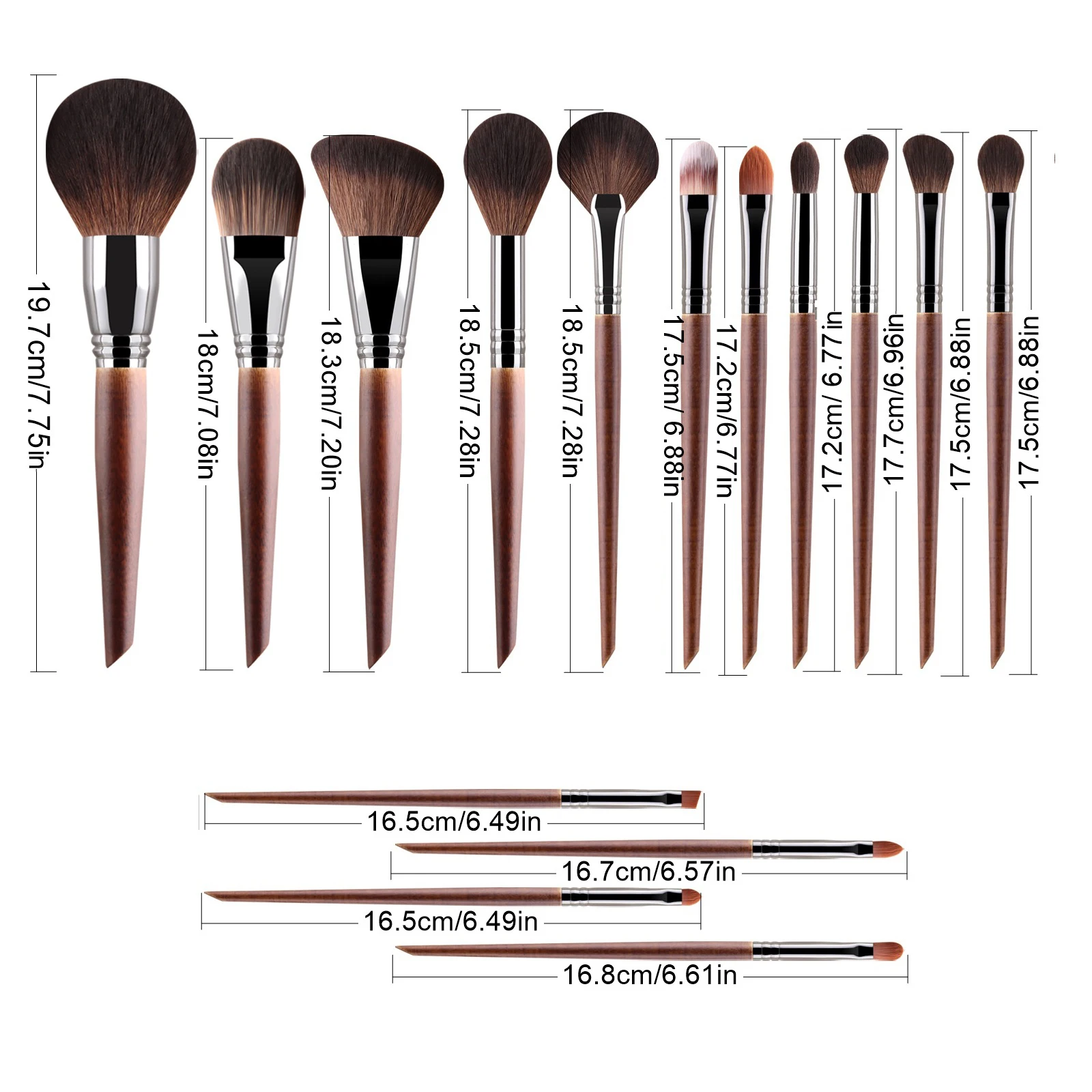 15 brushes are precisely configured for different makeup areas on the face, covering all needs from extensive coloring to detailed outlining: