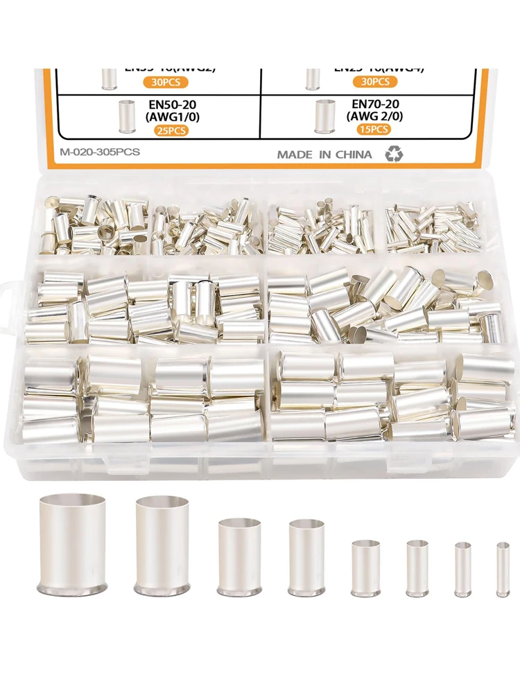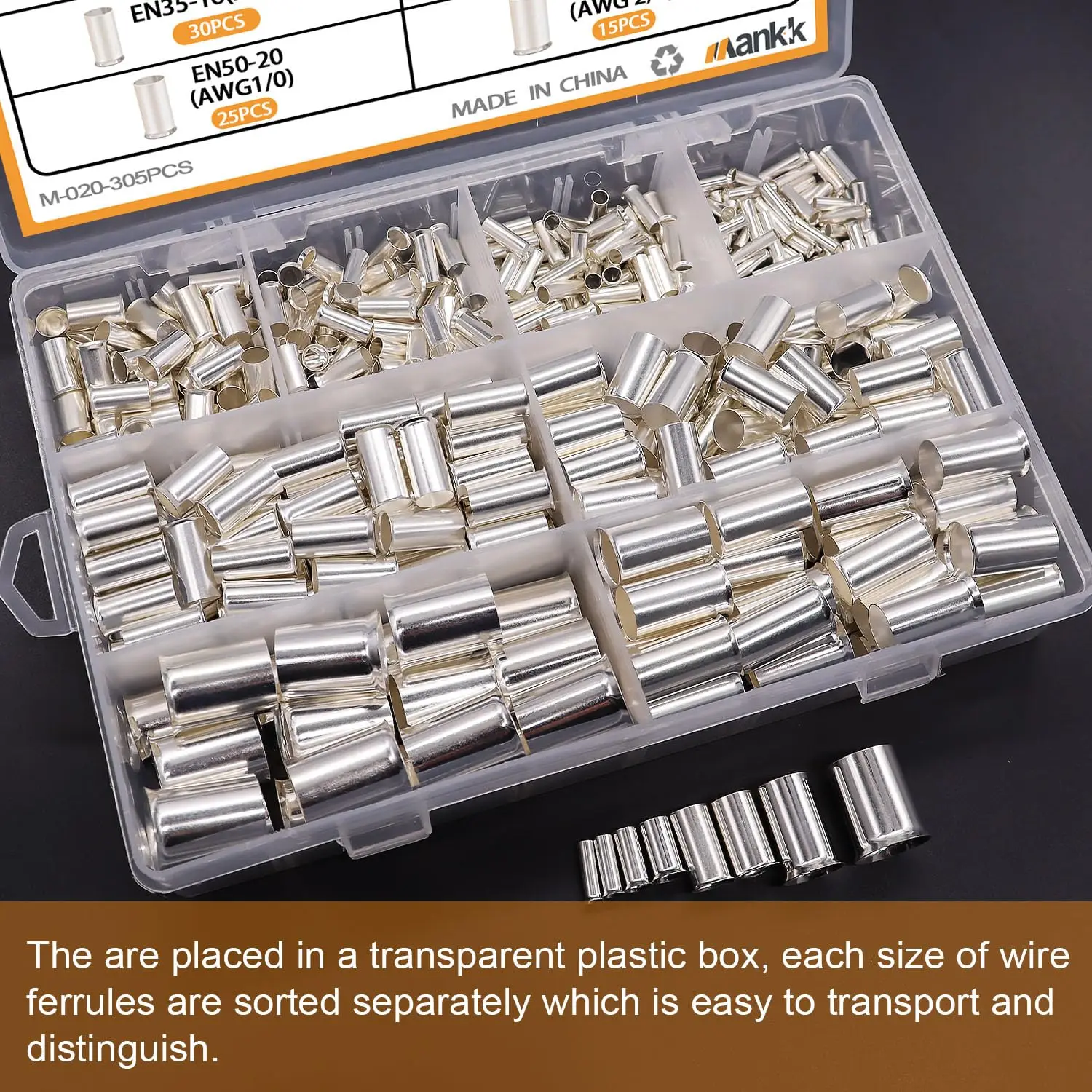 166/305 Pcs Wire Ferrules Kits Silver Plated Copper Crimp Terminal Connector 8 Sizes Sleeves Insulated Cord Pin End Terminal