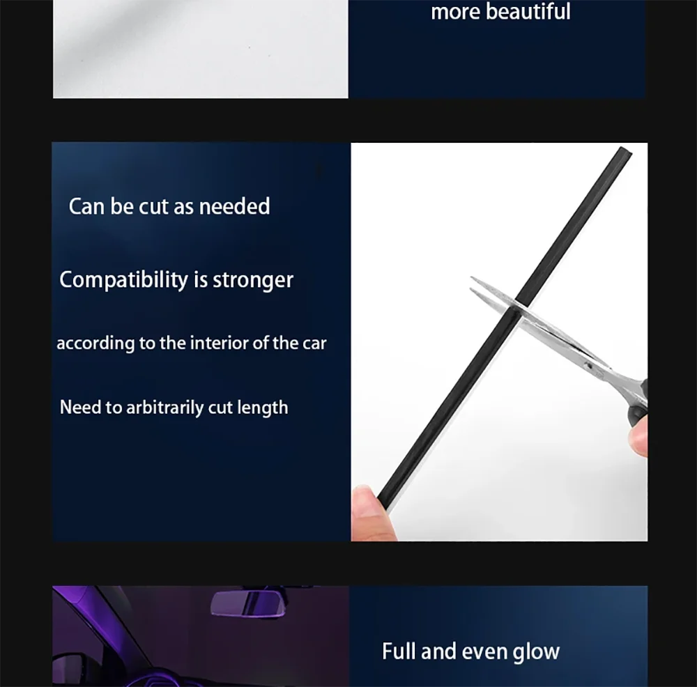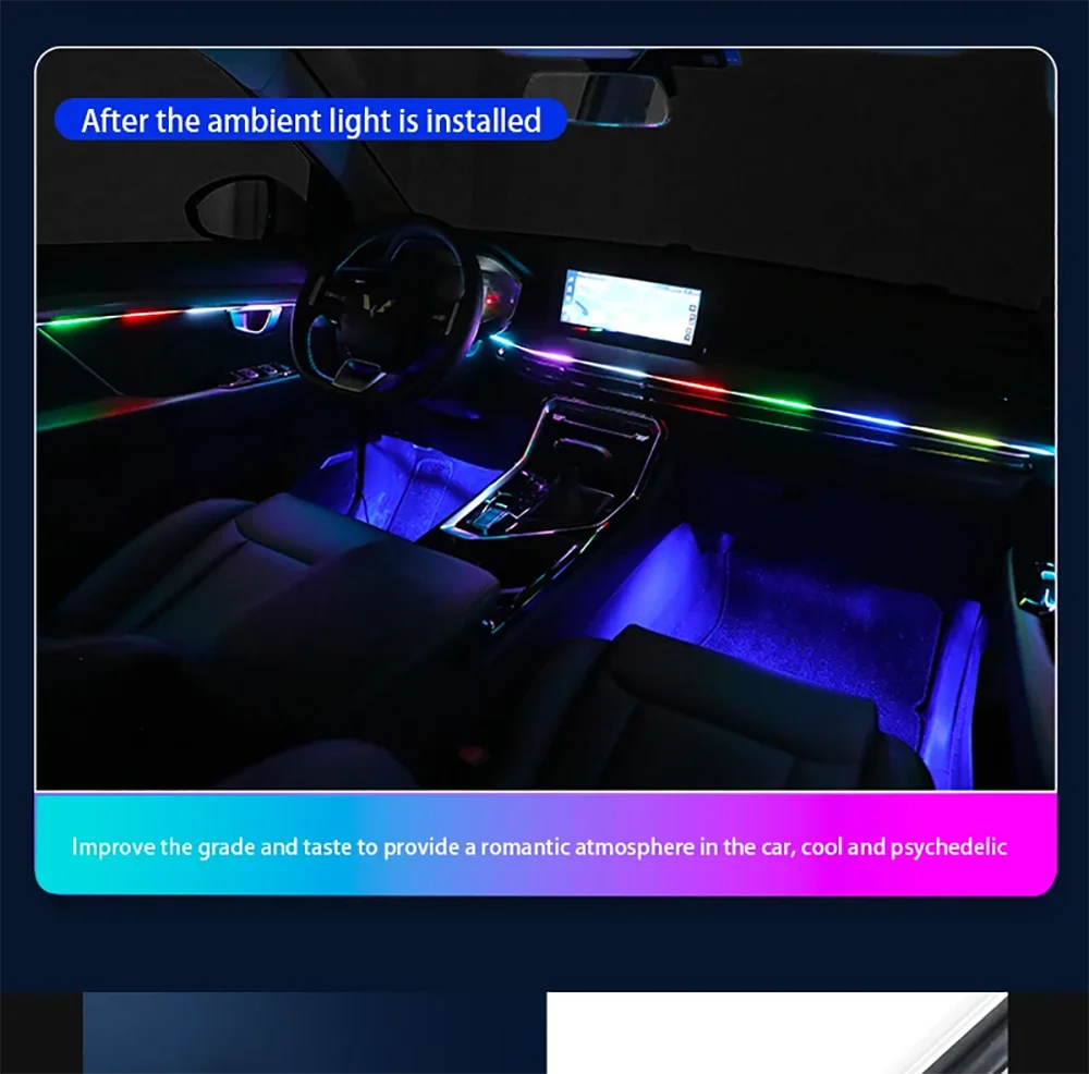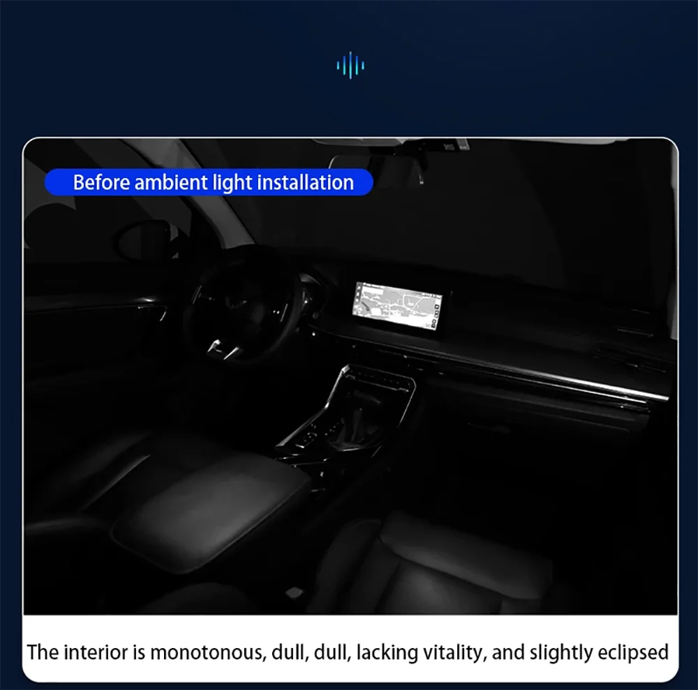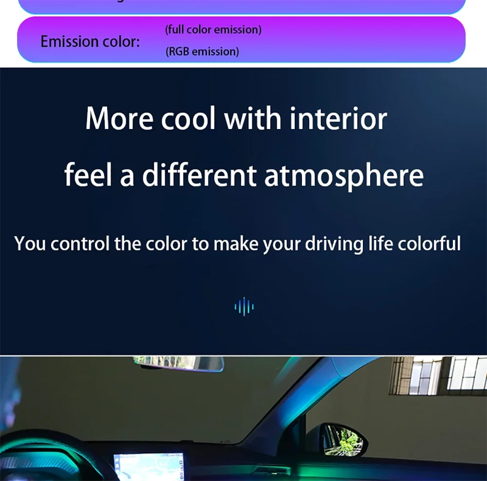 2) musical decoration. The Kit designed to be simple, however, also provides elegance inside the car when driving at night or enjoying music. And because it has sound sensor, the car low brightness system is synchronized with the rhythm of the music.