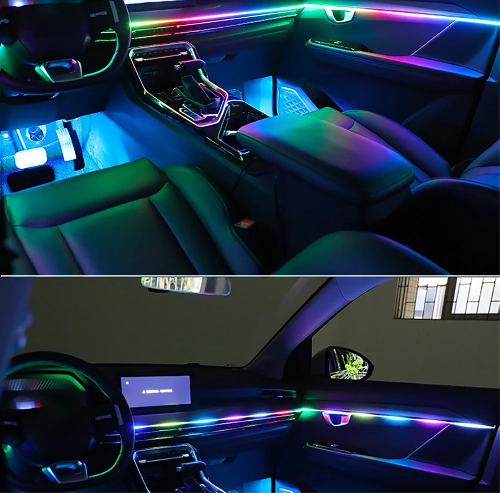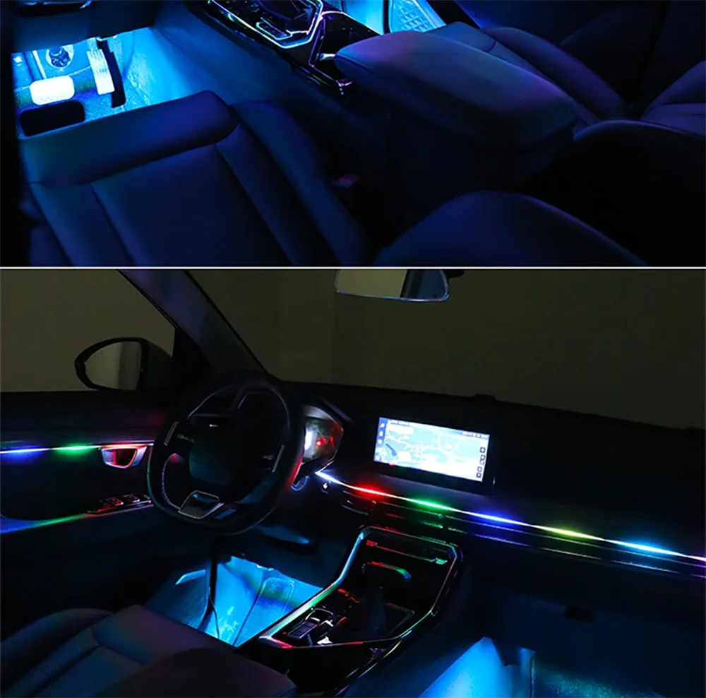 18in1 Neon Car Interior Ambient Light APP DIY Control Acrylic Strip Light Guide Fiber Optic RGB Auto Decoration Atmosphere Lamp