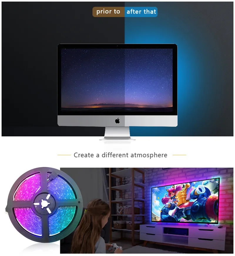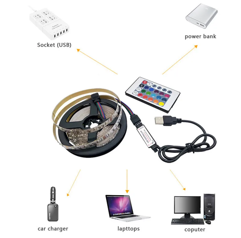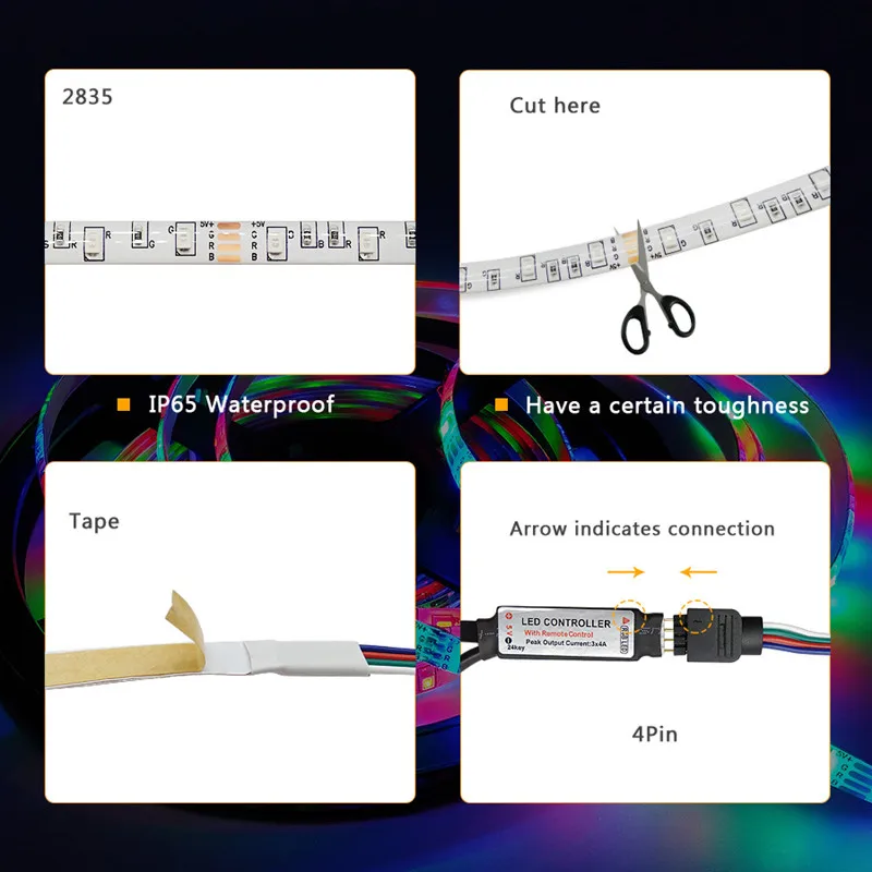 • RGB color options: The LED strip comes in a variety of RGB colors, allowing you to customize the lighting to match your decor or mood.