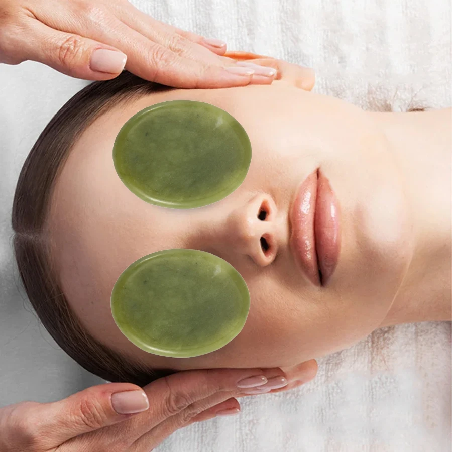 1pair Hot/cold Compress Eye Cover Natural Jade Eye Mask Face Massage Manual Massage Tool for Face Back Neck Beauty Skincare Tool