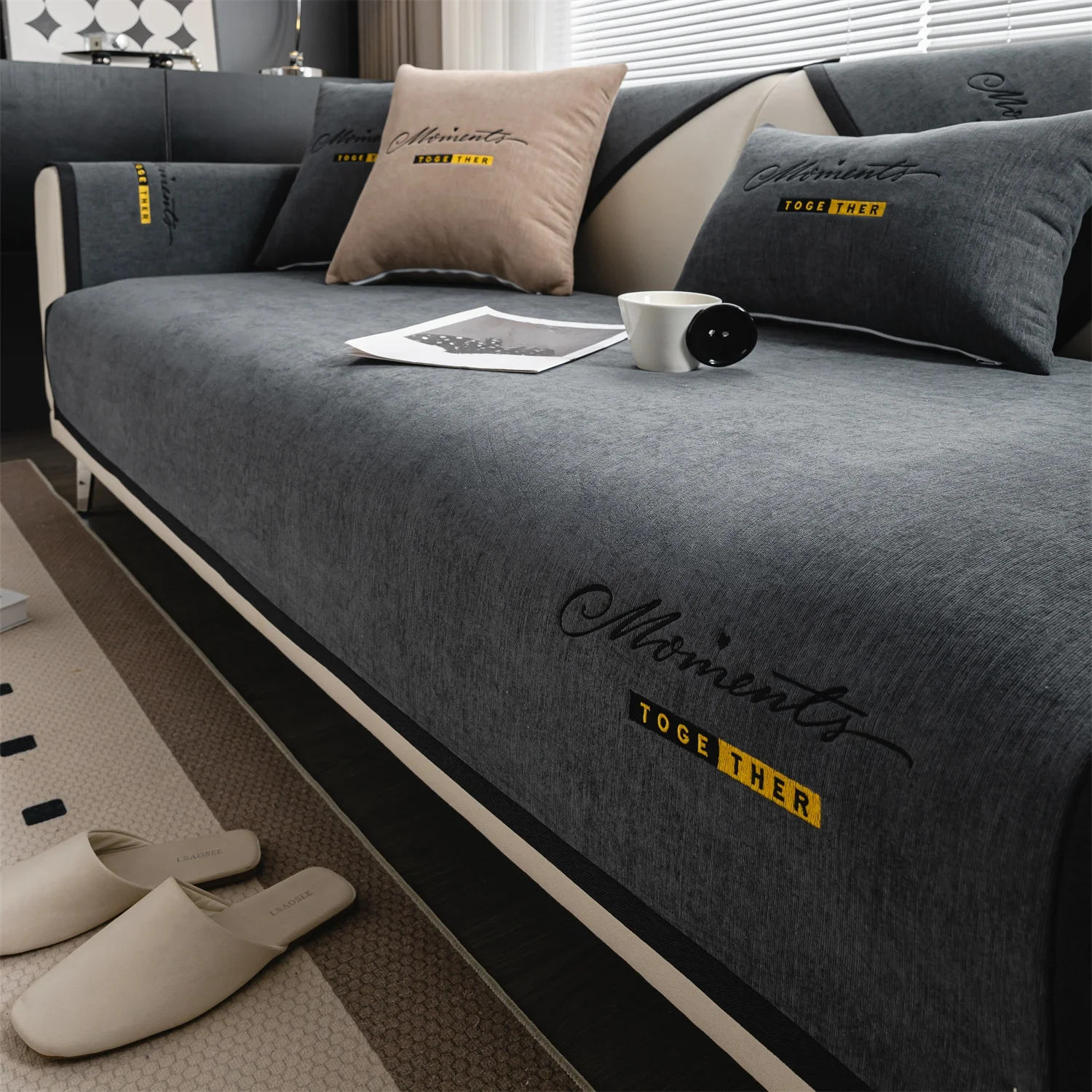 1pc Embroidery Luxury Non-Alip Chenille Sofa Cover for Living Room Couch Cushions Towel All Seasons Furniture Protector