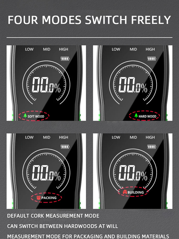 4. It can be used to measure the moisture content of various materials such as wood, paper, cardboard, powder walls, flooring, etc