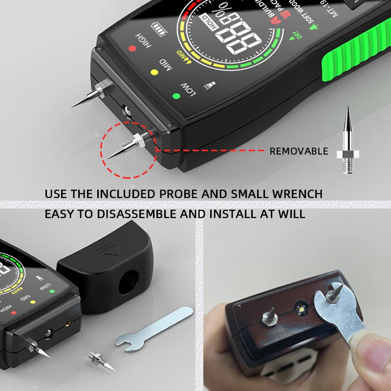 1PC MT19 Color Screen Wood Moisture Meter Wall Moisture Content Tester Paperboard Humidity Detector Cement Brick Moisture Tester