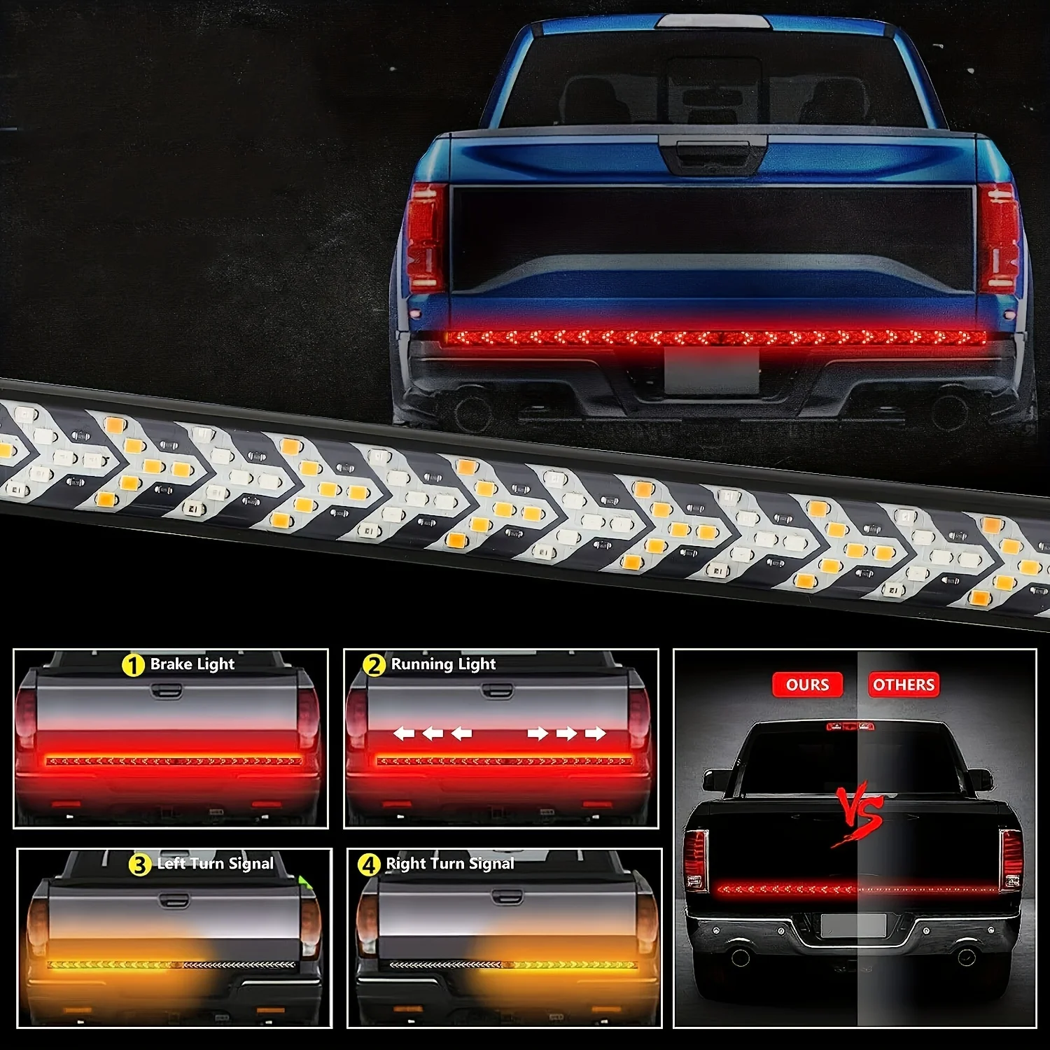 1pc Truck Tailgate Light Bar 60" Inch LED Strip with Red Brake White Reverse Sequential Amber Turning Signals Strobe Lights