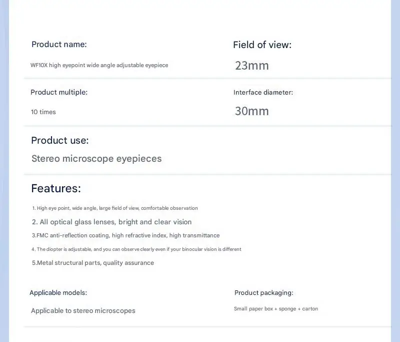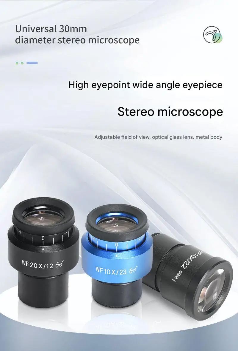1PCS Stereo Microscope Eyepiece WF10X High-Eyepoint Diopter Adjustable Wide-Field Field of View 23mm Interface Diameter 30mm