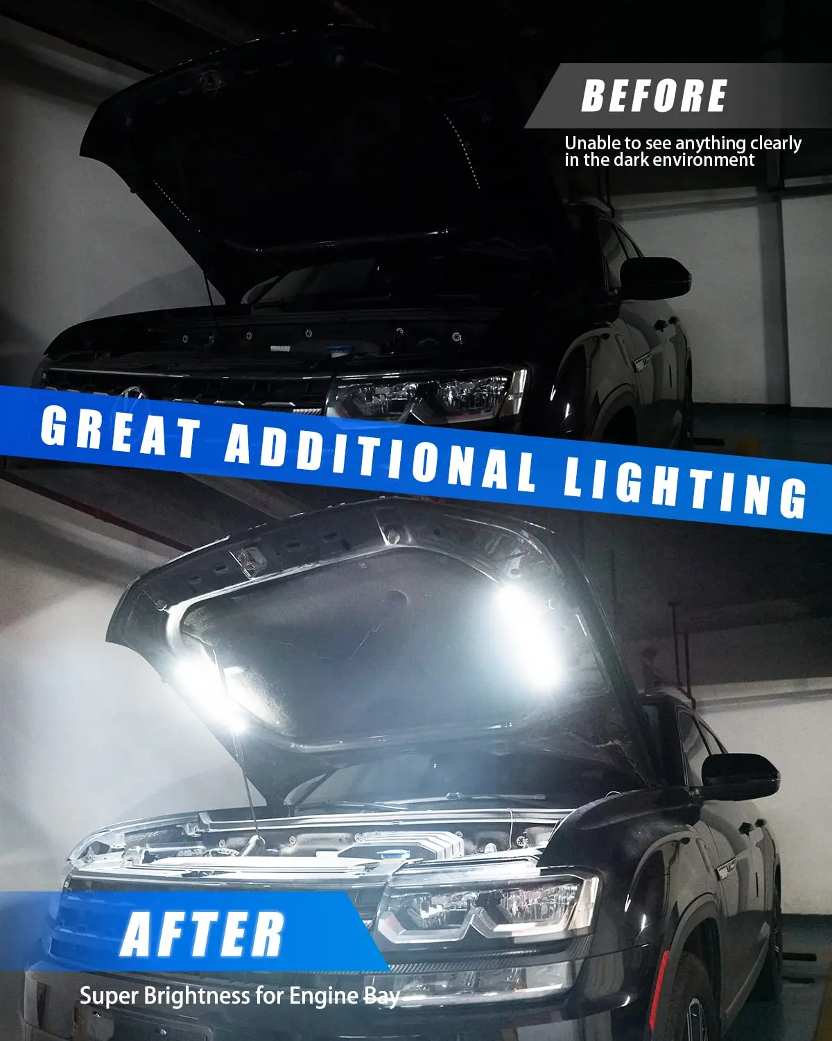 【Working in The Dark】The car under hood work light is super bright, 12V-14V led strip light has a length of 36cm/14.17in, which is great for illuminating engine bays and hard to see areas under the hood of your vehicle. Perfect for automotive interior ambient lighting, gives a plenty bright lights. Allows you to work normally and easily even after dark.
