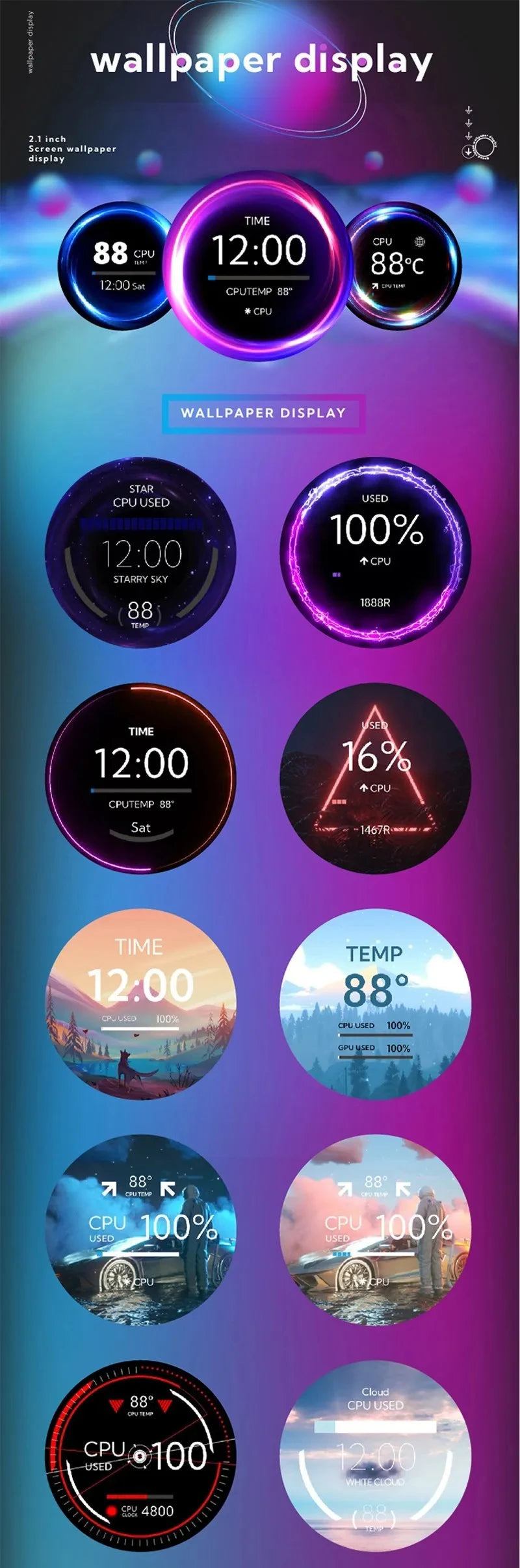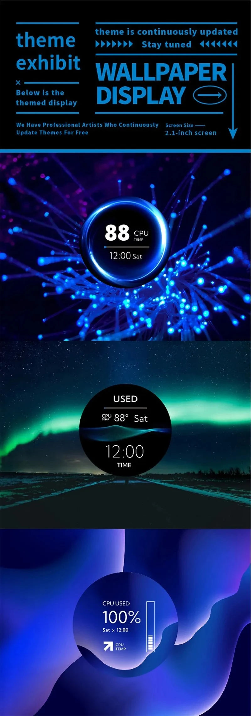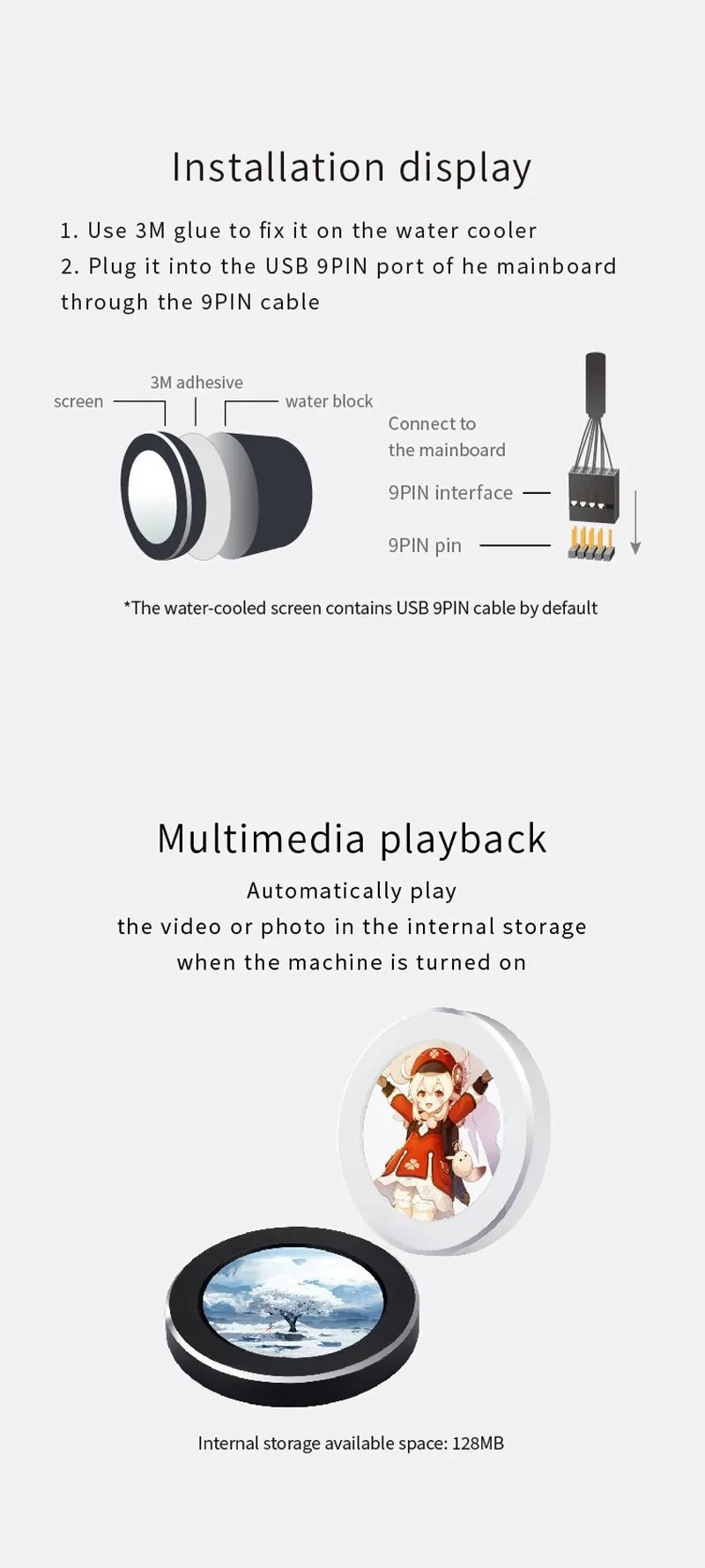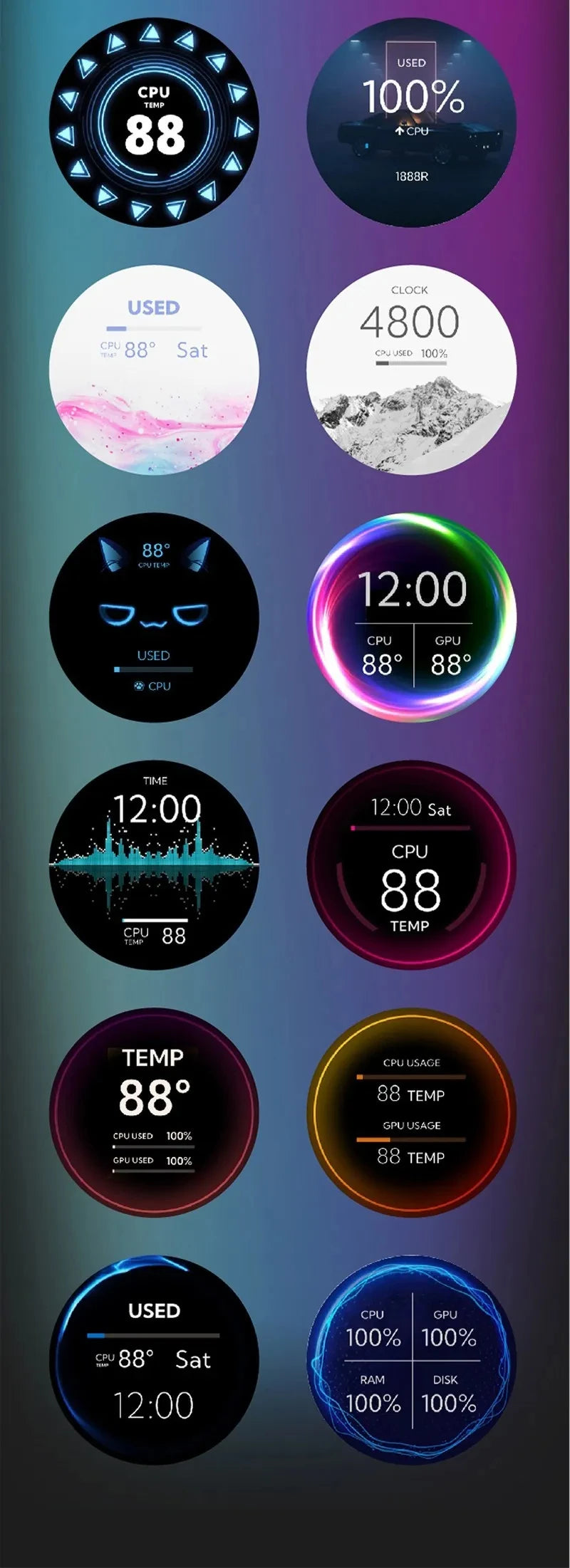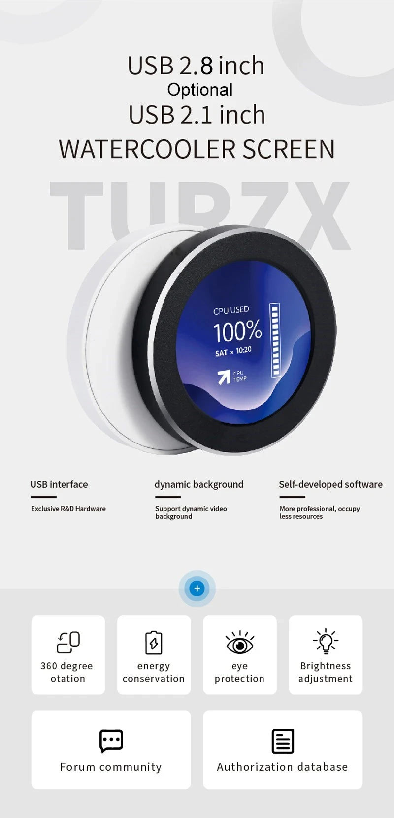 2.1 Inch IPS Secondary Screen 480x480 USB Water-Cooled Round LCD CPU GPU RAM HDD Monitoring without AIDA64 MINI PC Gamer Display
