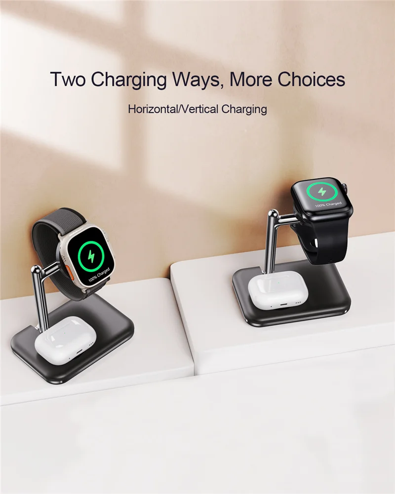 [Widely Compatibility] 2-in-1 watch charger stand is widely compatible with Apple Watch Ultra/9/8/7/6/5/4/3/2/SE, and charging dock for AirPods 3/2/2nd/Pro (Note: Recommend to use a 5V/1-2A above charging adapter for efficiency charging)