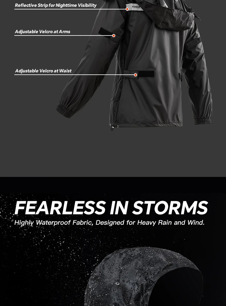 VEMAR 2-Piece/Set Jacket and Pants Motorcycle Rain Suit - Extreme Weather Protection Men Women Raincoat for Moto Riders