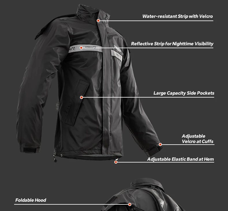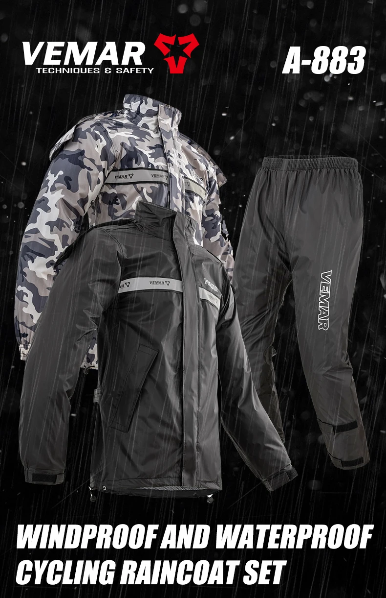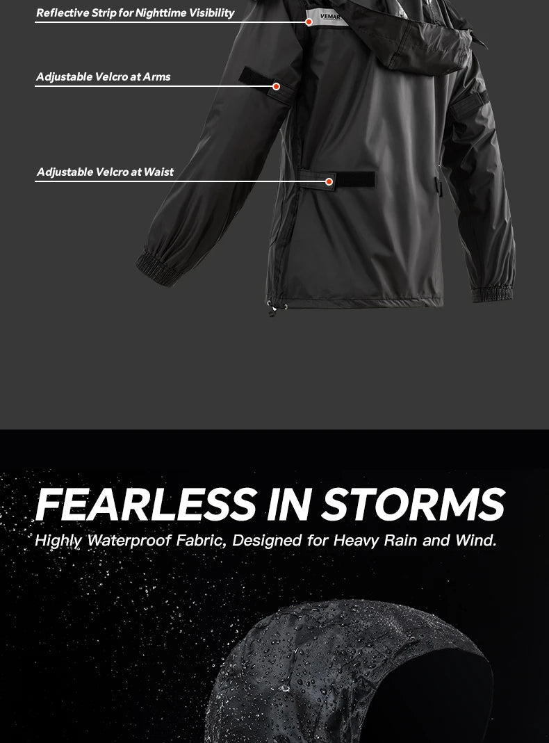 2-Piece/Set VEMAR Jacket and Pants Motorcycle Rain Suit - Extreme Weather Protection Men Women Raincoat for Moto Riders