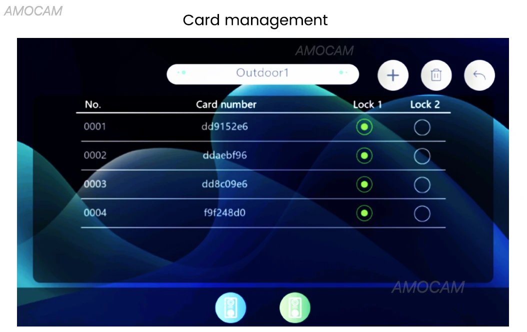 - Security door lock control: Compatible with magnetic and electric locks with lock delay time setting (lock requires power).