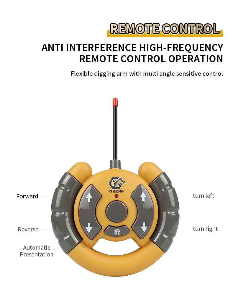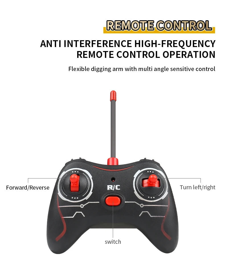 1.Function: Forward, backward, turn right, left, dig, one-click demo, the console rotate 680, and with music and light.