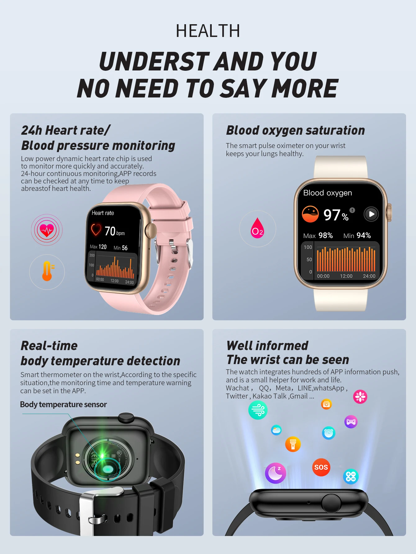 2024 Smart Watch Intelligent Call Music Playback Heart Rate Body Temperature Detection Multi-function Exercise Wristband Wome