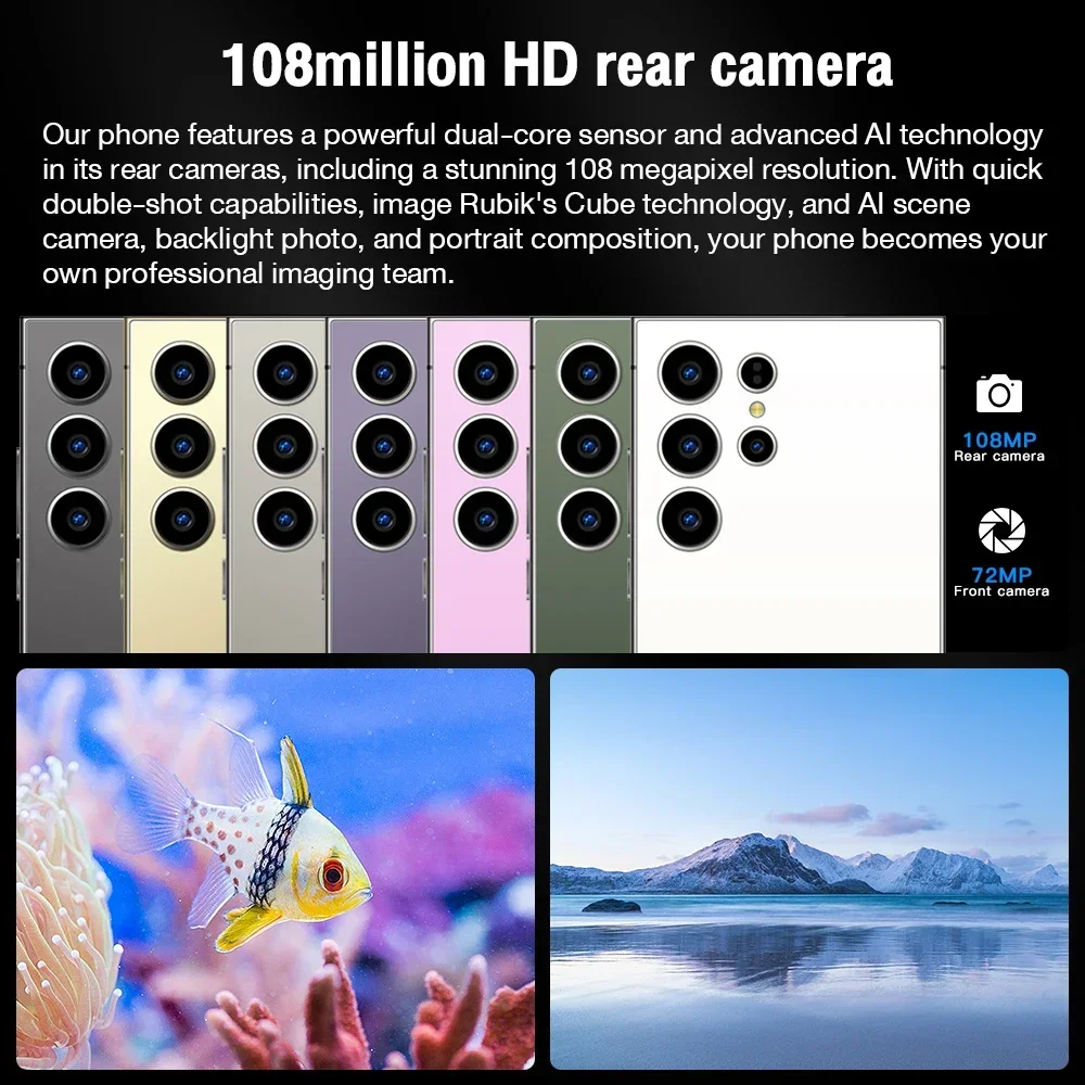 The S25 Ultra model has a combination of 108MP cameras. The main camera has a large aperture of f/1.8 and 1.28um pixels. This powerful combination increases light sensitivity during backlighting or low light, Just aim and shoot and the S25 Ultra will provide your customers
