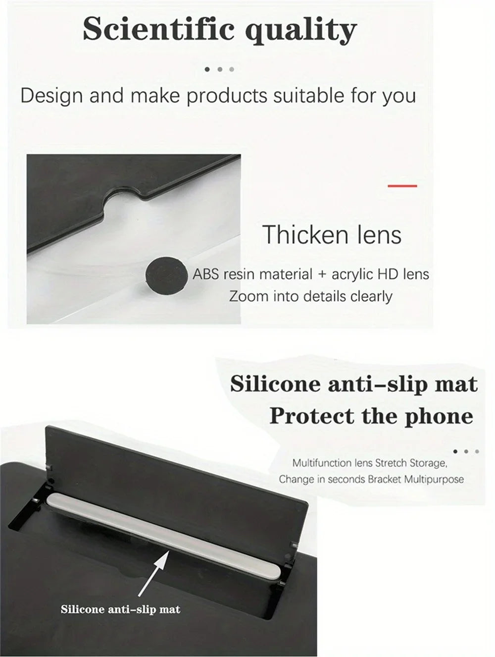 2025 Newest 12/10 inch HD Mobile Phone Screen Video Magnifier 3D Screen Amplifier For Phone Holder Enlarged Screen Phone Stand