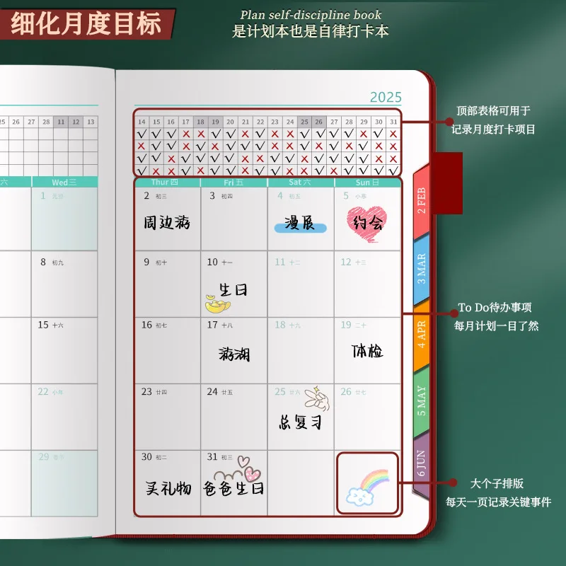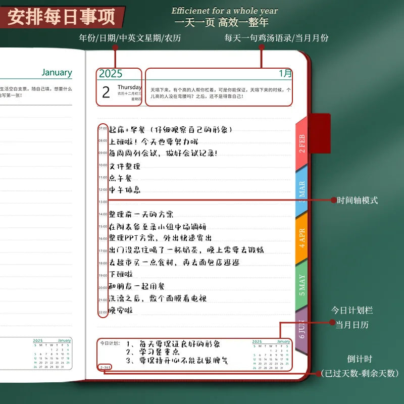 2025 Planner Schedule Agenda Efficiency Notebook Daily Weekly Monthly Diary Journal for Students School Office Stationery Supply