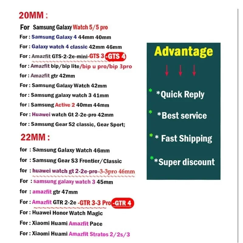 Model Number: for amazfit gtr gts stratos 2 3 4 mini bip smartwatch straps