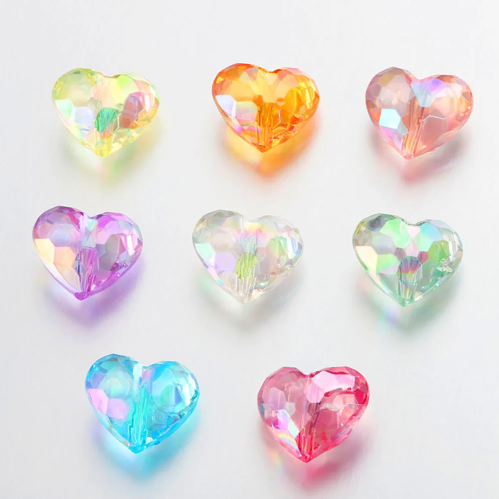 20pcs Mixed Color Love Heart Beads Clear Curtains Spacers for DIY Necklace Wind Chimes Christmas Valentine Gift Craft Materials