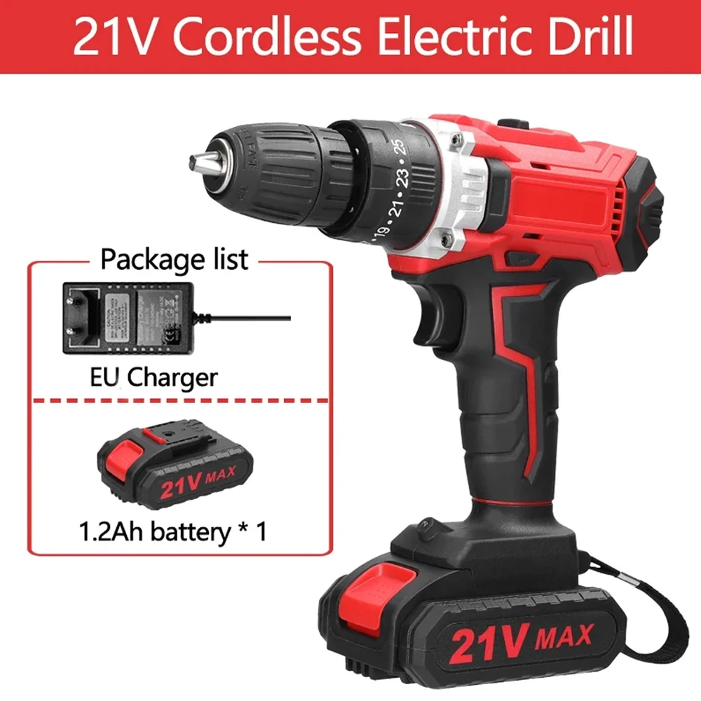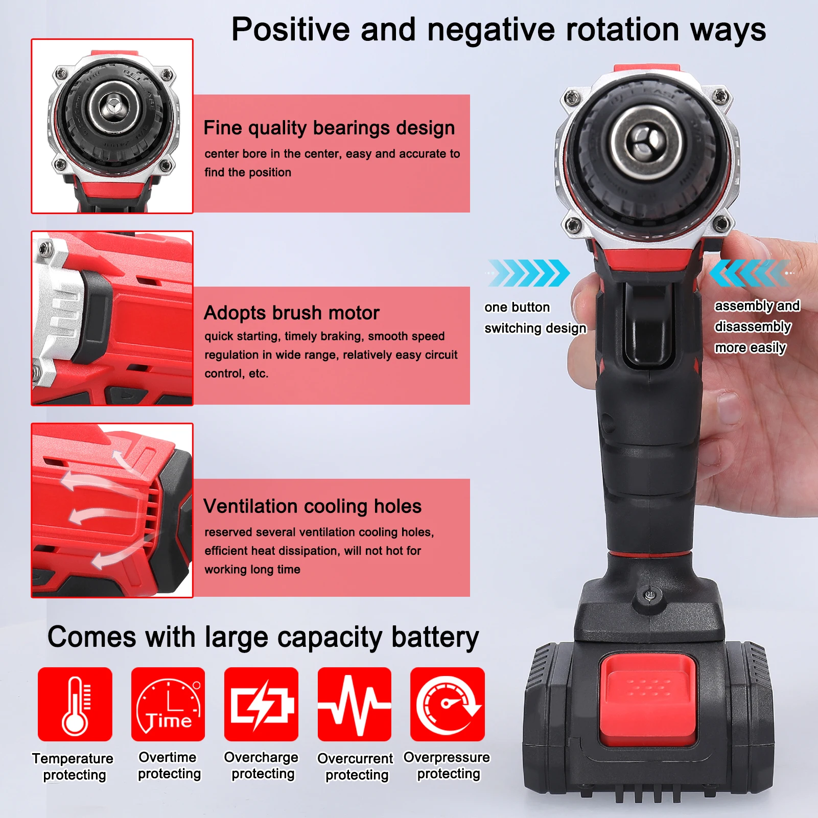 21V Electric Drill Brush Motor 2 Speed Control Stepless Speed Regulation Rotation Ways 25 Gears Torques Adjustable Lithium Drill
