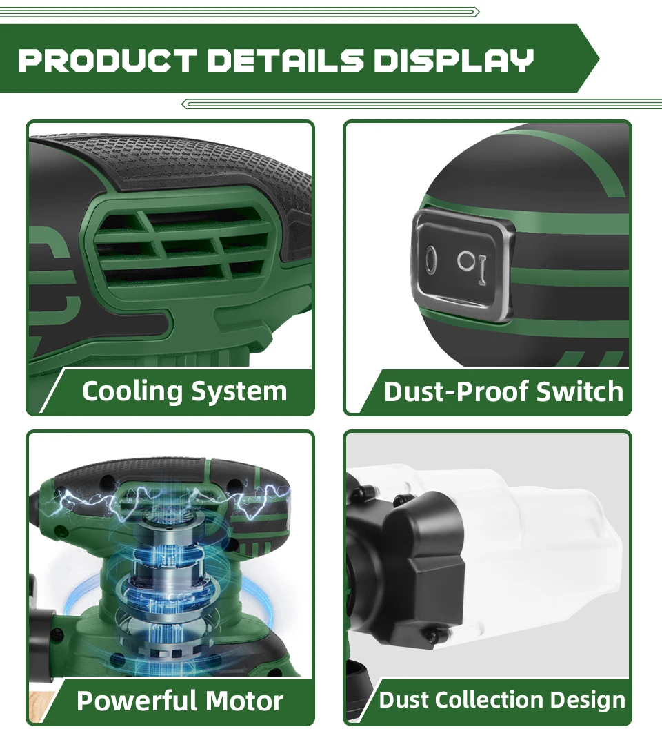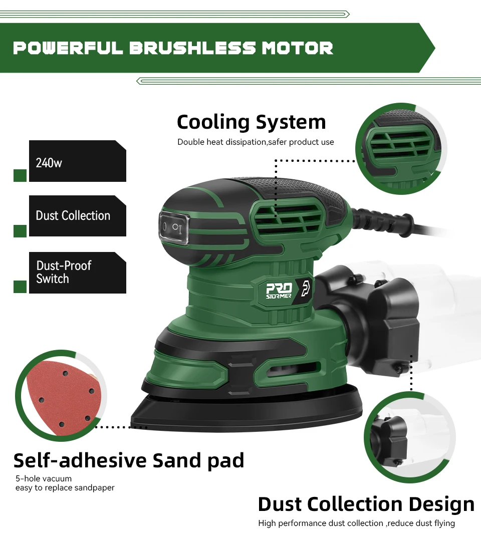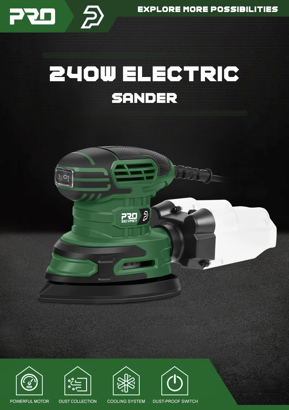 230V Random Orbital 240W Electric Detail Sander Machine Strong Dust Collection 15Pcs Sandpapers olishing Tool PROSTORMER