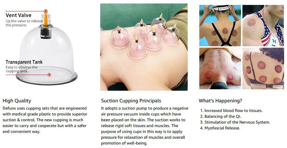 1.【PROFESSIONAL CHINESE HEALTH THERAPY】 Cupping is an ancient Chinese physical therapy,The vacuum cupping kit is made of high-grade organic materials, which is not only stronger and more durable than traditional cupping, but also safer and more environmental protection. therapy cupping set use suction to create a vacuum in the cup placed on the skin, with good penetration effect and high traction, providing the best deep tissue massage.