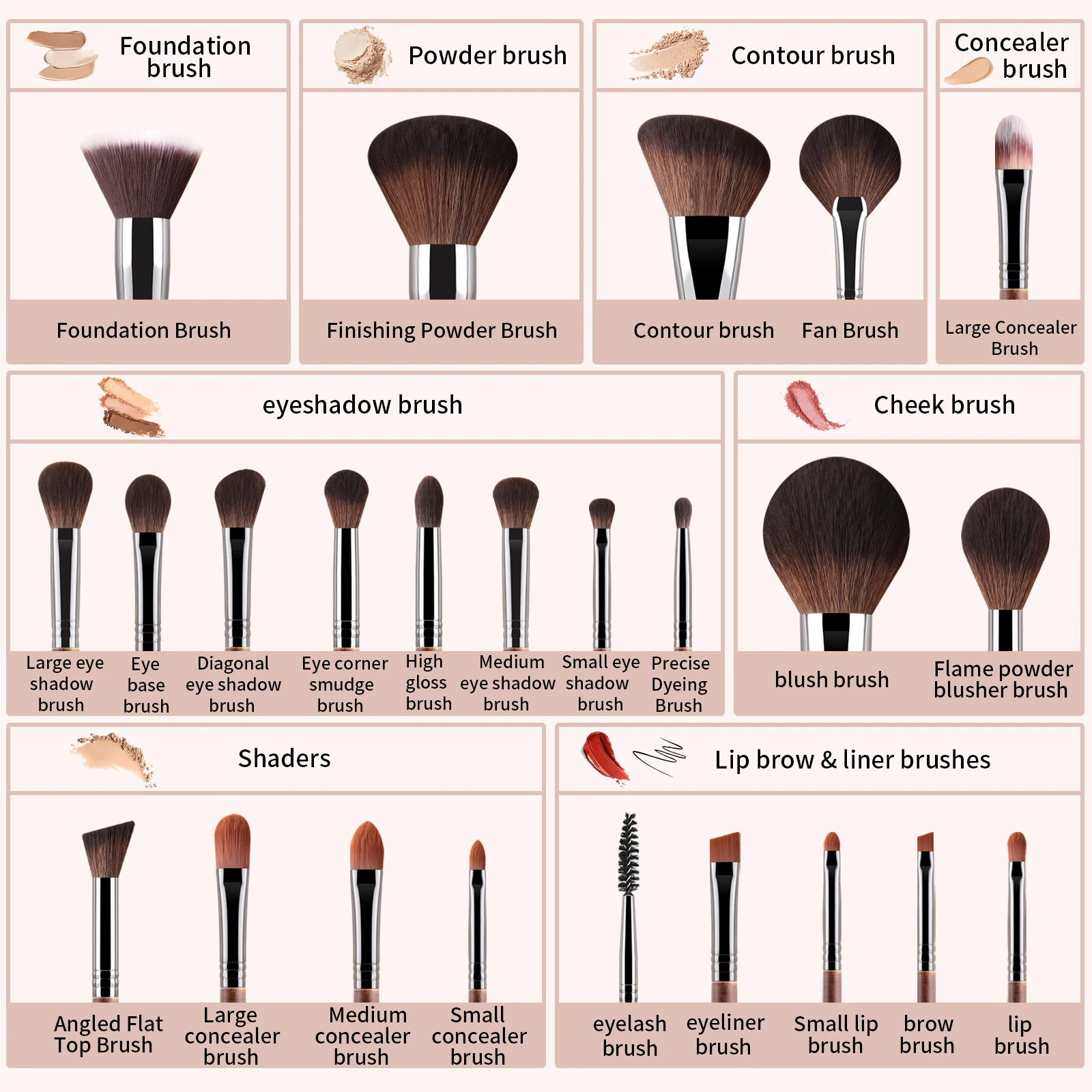 Travel & Business Trips: The set can be stored in a portable makeup bag, featuring a sturdy solid wood brush handle that resists damage, meeting the needs for on-the-go makeup application and touch-ups;