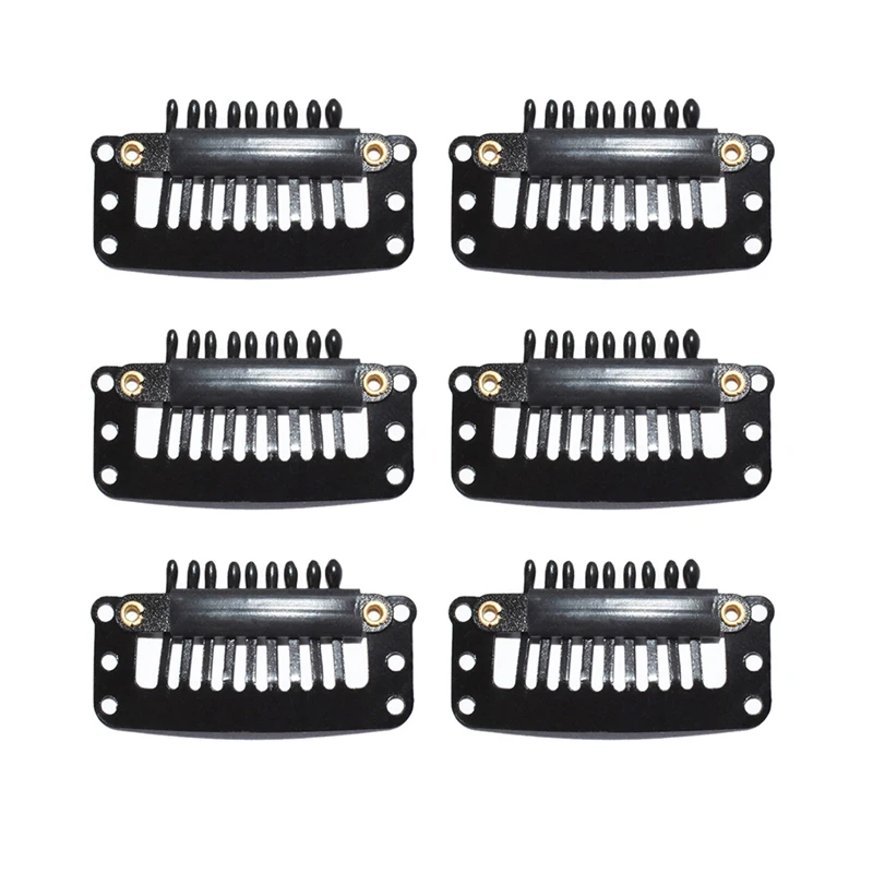 9 Teeth Design:Our hair extension clips are designed with 9-Teeth snap-comb clips and 6 little holes.Special designed for hair extension and wigs, with little holes for linking or sewing the wig. The anti-slip are design to groove shape, so that the wigs are more firmly to wear.