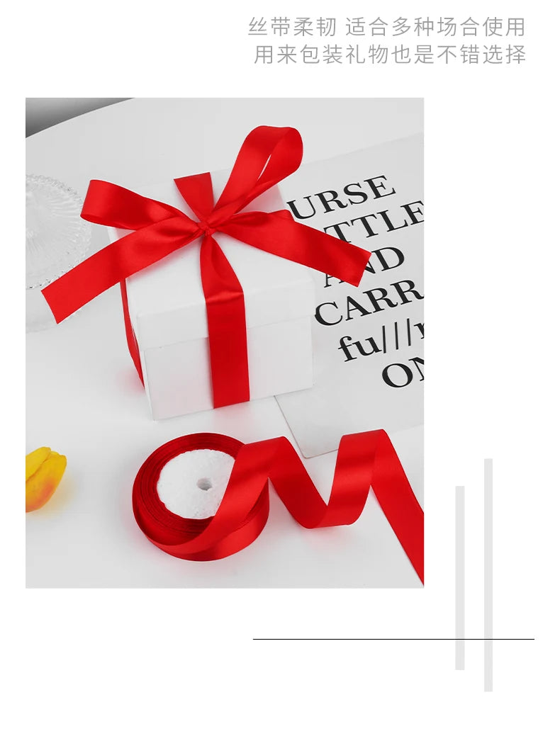 25yards/roll 1inch Satin Ribbon DIY Handmade Crafts Gift Box Flower Cake Decoration Wedding Birthday Party Festival Supplies