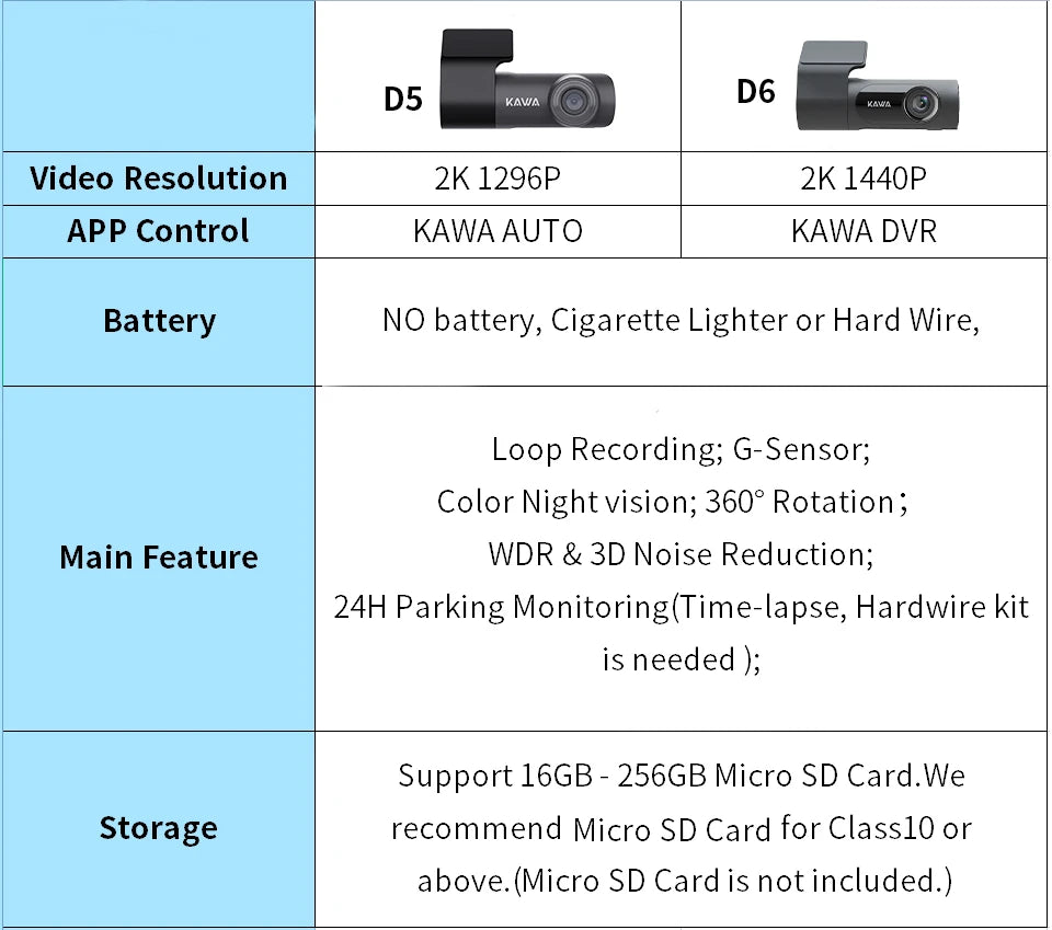 We recommend using KAWA Micro SD Card and Micro USB port Hardwire Kit, as using original producer micro SD card and Micro USB port hardwire kit can provide a smoother experience.