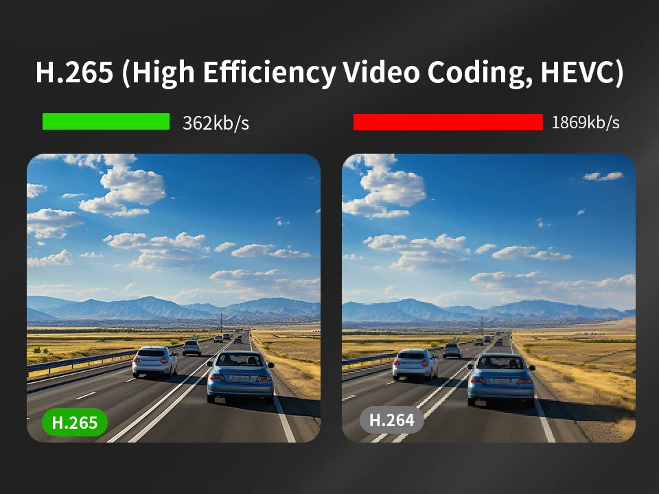 H.265 encoding offers faster transmission efficiency and higher image quality than H.264, doubling compression and saving 50% of storage space.(Please ensure that your player supports the H.265 video format).