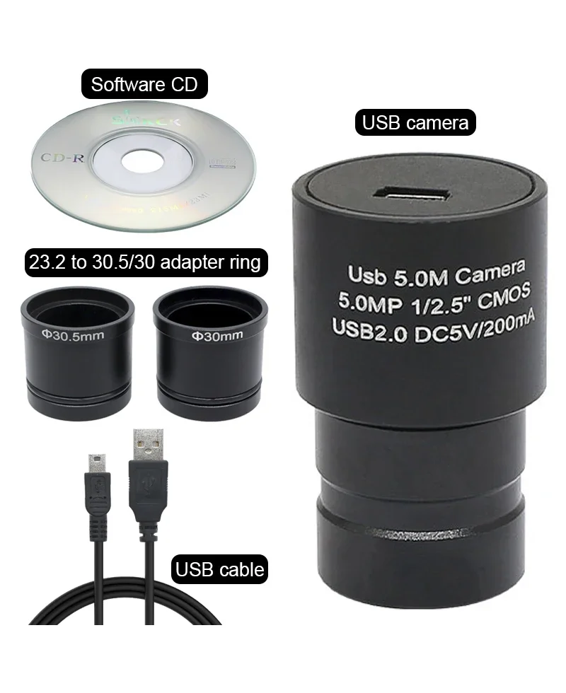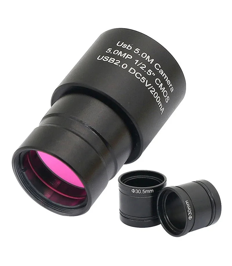 2MP/5MP CMOS USB Camera Microscope HD Electronic Eyepiece 23.2mm Mounting with 30mm 30.5mm Ring Adapter Digital Camera Photograp