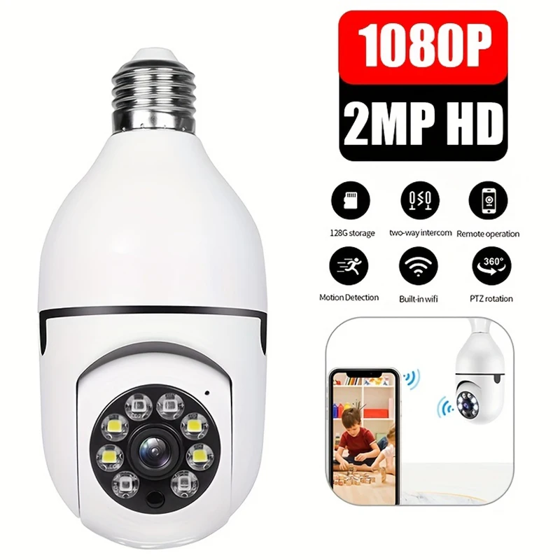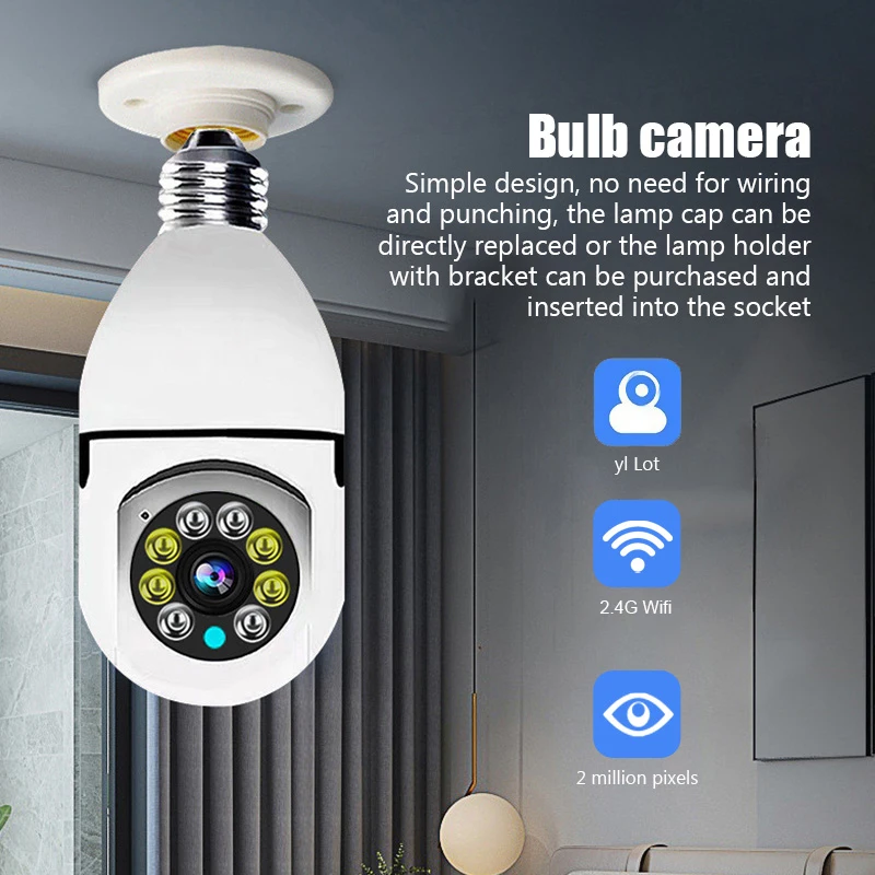 2MP Bulb E27 Wifi Surveillance Camera Full Color Night Vision Automatic Human Tracking Zoom Indoor Security Monitor Wifi Camera