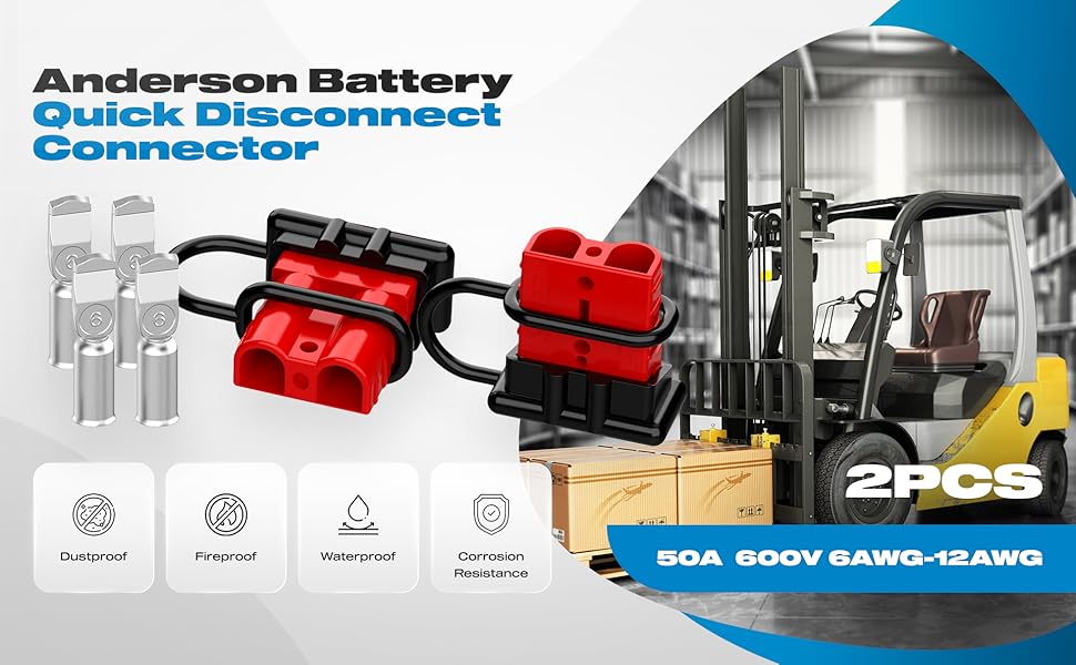 2PCS Anderson Connector 50A 6–12 Gauge 12V-36V Battery Quick Connect/Disconnect Connector Wire Harness Plug Kit Winch Wiring Kit