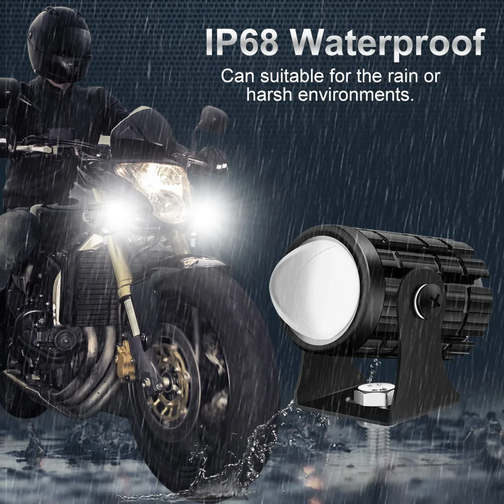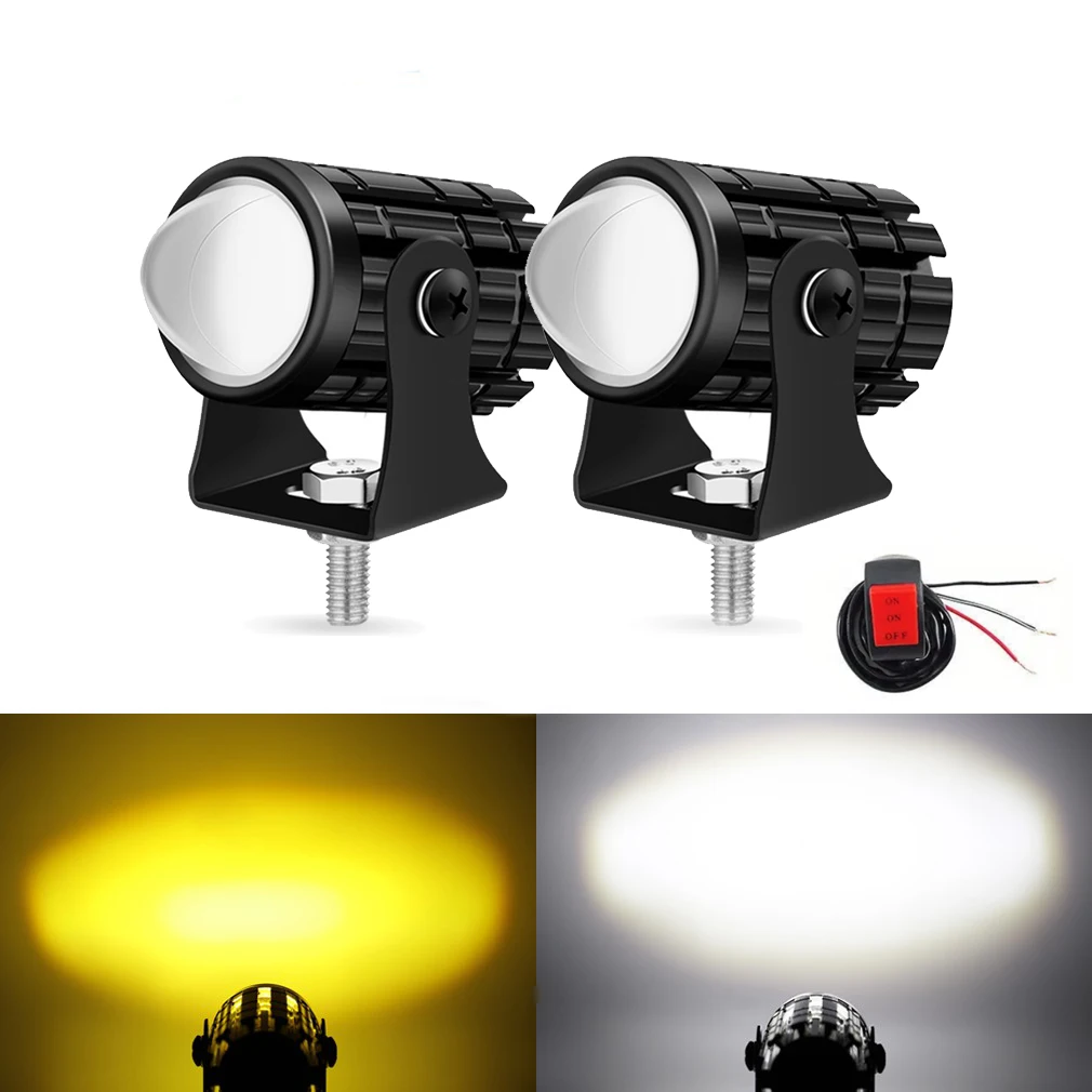 2pcs Motorcycle Auxiliary Spotlight Mini LED Driving Headlights with Switch Dual Color White Yellow Moto Fog light Accessories