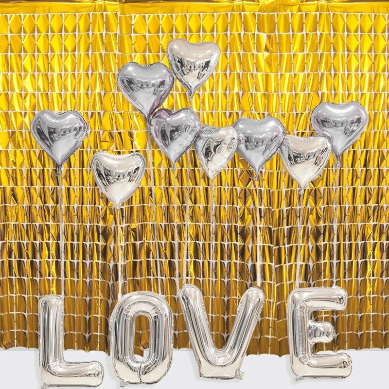 2pcs Party Backdrop Metallic Foil Fringe Tinsel Curtain Adult Kids Birthday Party Wedding Decoration Baby Shower Favor Supplies