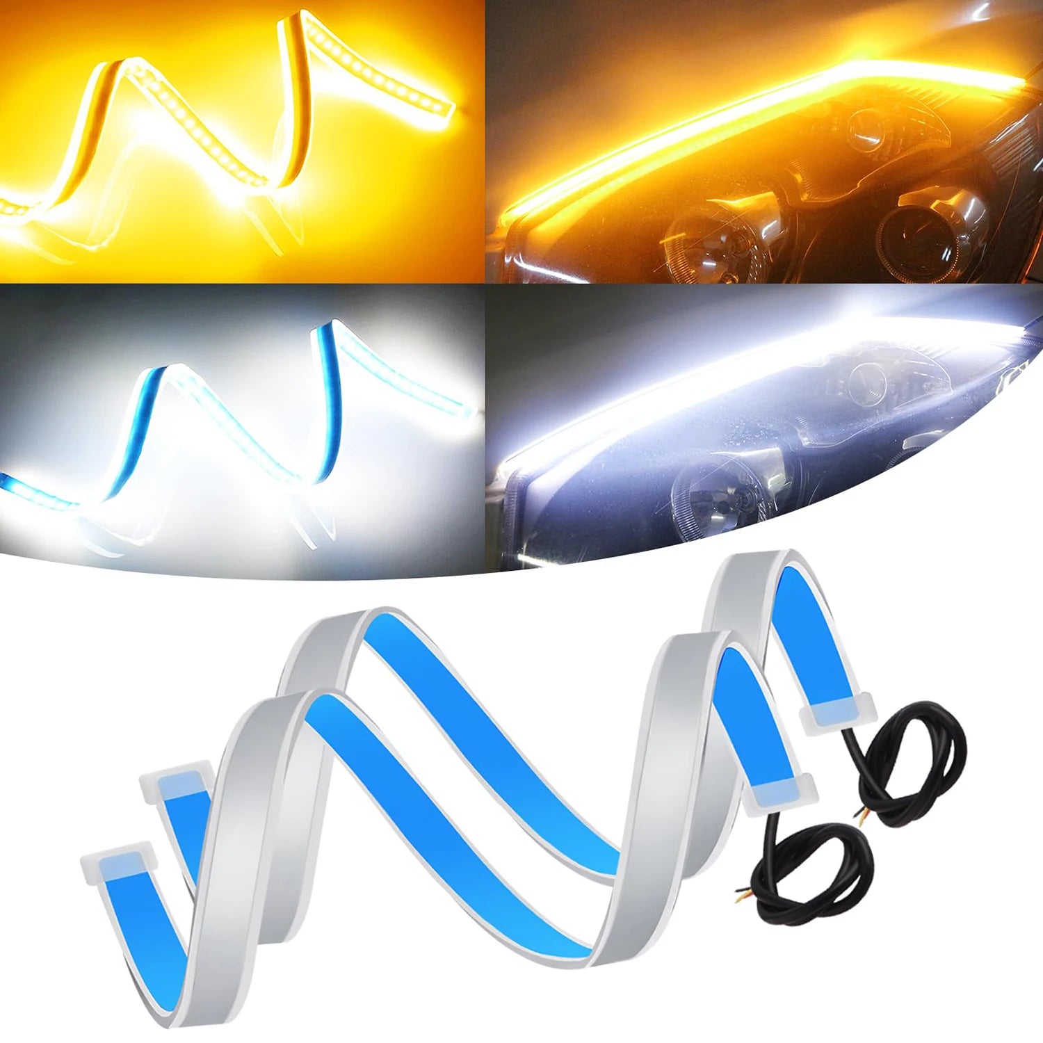 2pcs Start Scan LED DRL Car Daytime Running Light Flexible for Car Headlights White Turn Signal Yellow Brake Strip Lights 12V