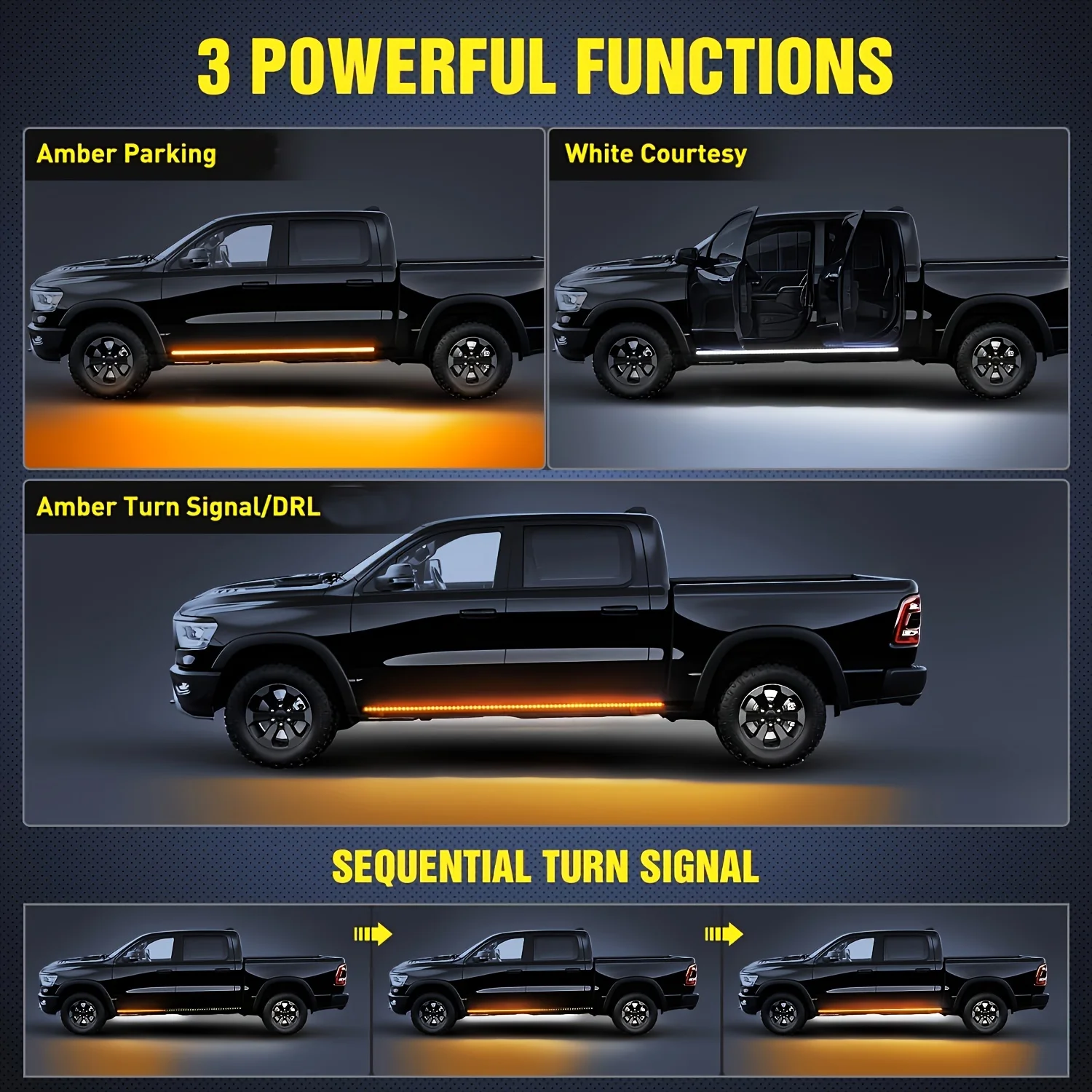 Widely Applicable: With working voltage of 12V DC, fit for Amber turning on most vehicles. Running board lights can be used for your SUV,Truck, Cars , trucks, Pickup, RV, Van, trailers, etc.