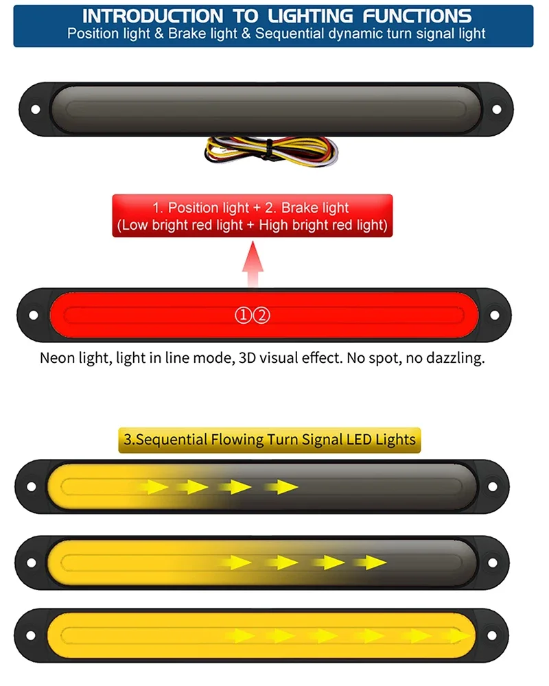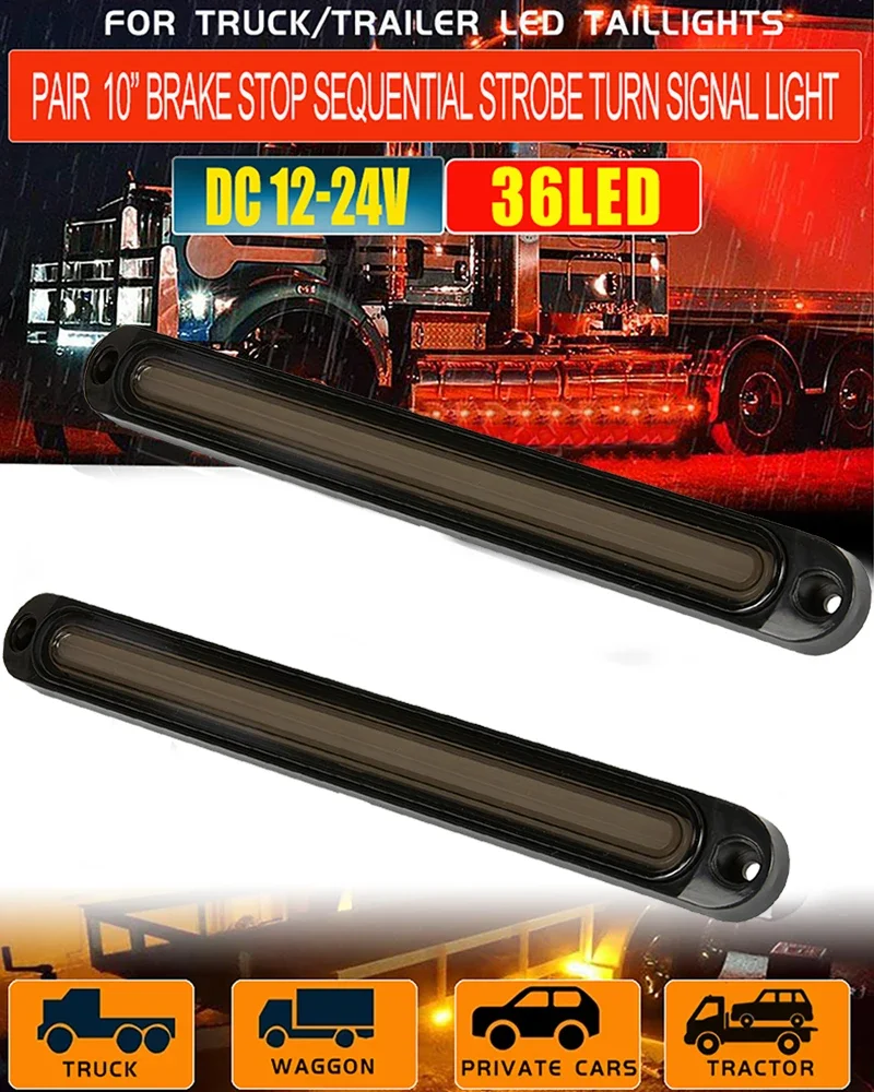 2pcs Universal 12V 24V 30 LED tail Light Turn Signal Brake Light Amber Flowing Red Day Running Light for Truck Trailer Lights
