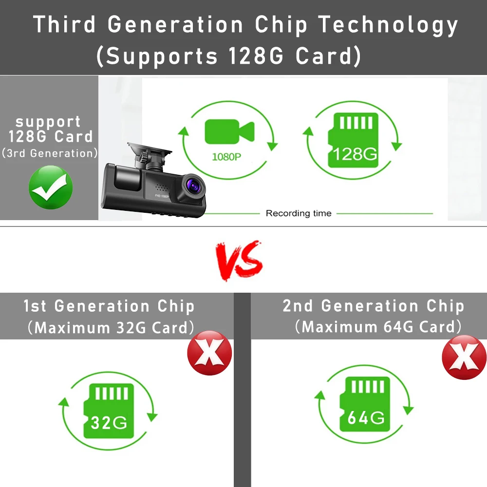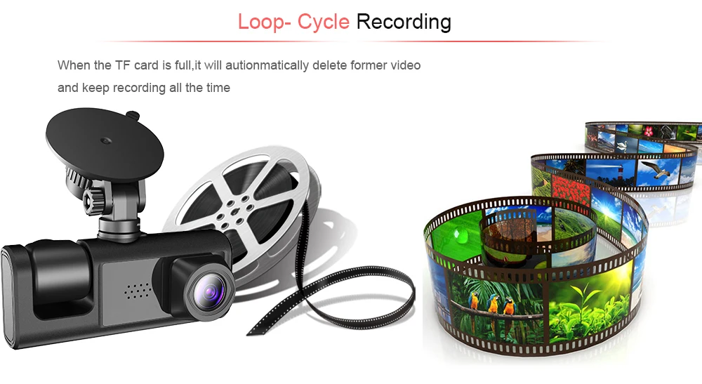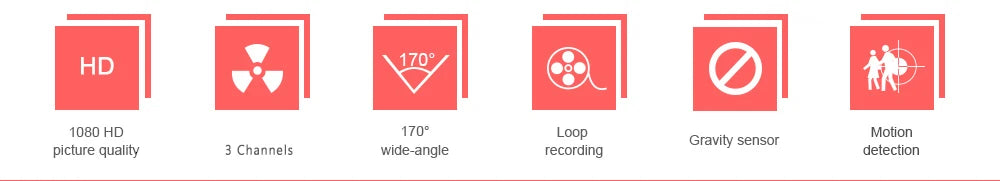 3 Channel Car DVR HD 1080P 3 Lens Inside Vehicle Dash Cam Three Way Camera DVR Recorder Video Registrator Dashcam Camcorder