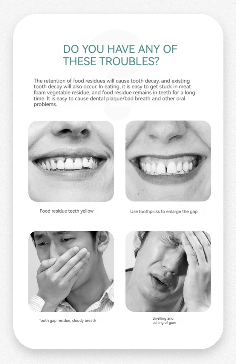 • High-Tension Smooth Dental Floss :The high-tension smooth dental floss ensures that even the toughest plaque is removed, leaving your teeth feeling clean and smooth.