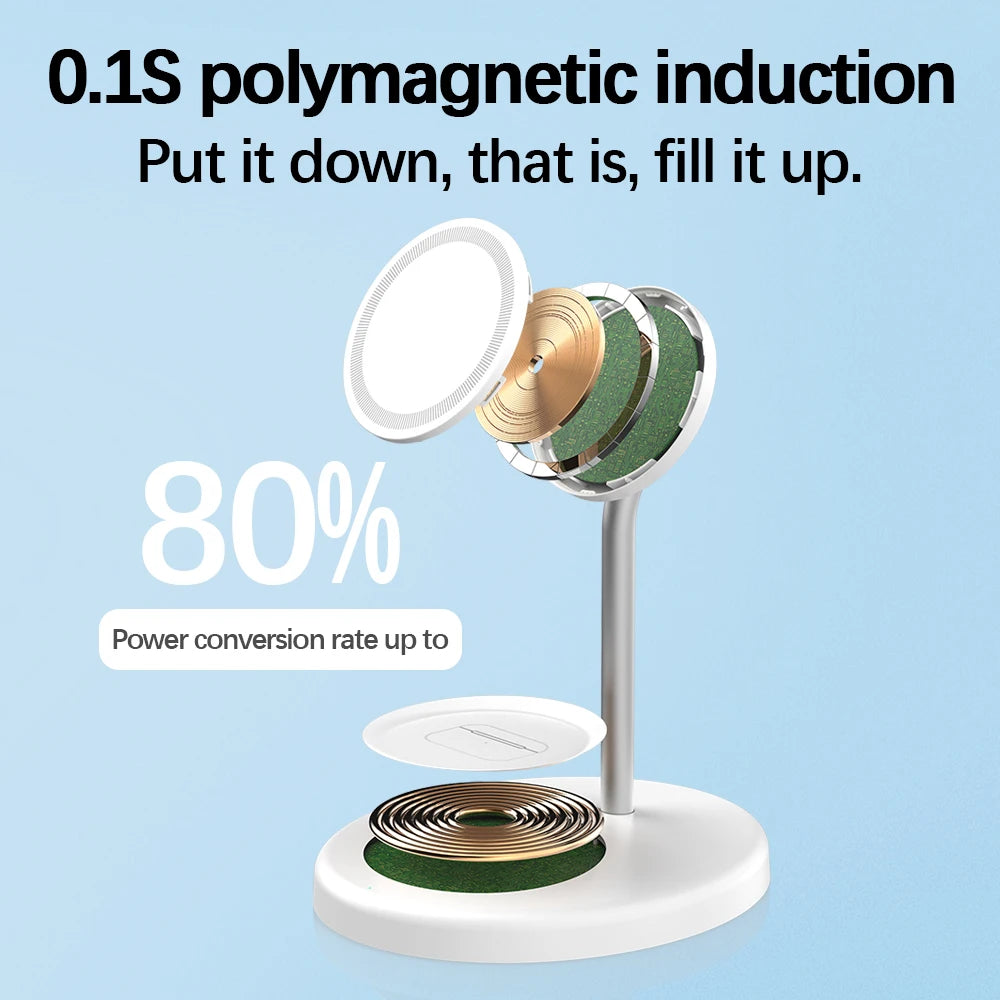 30W Magnetic Wireless Charger Stand 2 in 1 Fast Chargers For iPhone 15 14 13 12 Pro Max Airpods Macsafe Charging Dock Station