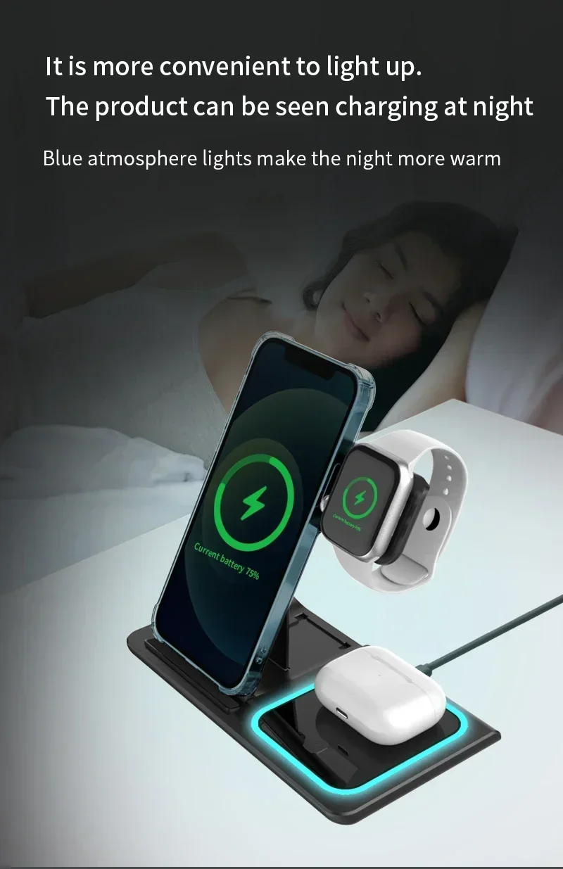 30W Wireless Charger Stand For iPhone15 14 13 12 11 Apple Watch 3 in 1 Foldable Fast Charging Station for Airpods Pro iWatch 8 7