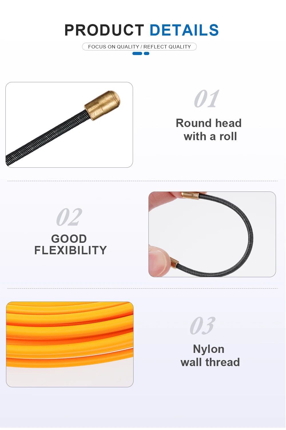 Light, strong and smooth steel cable head on both head can pass the crooked pipeline easily.
