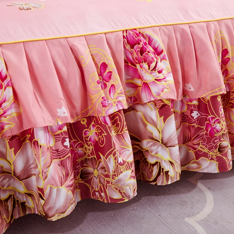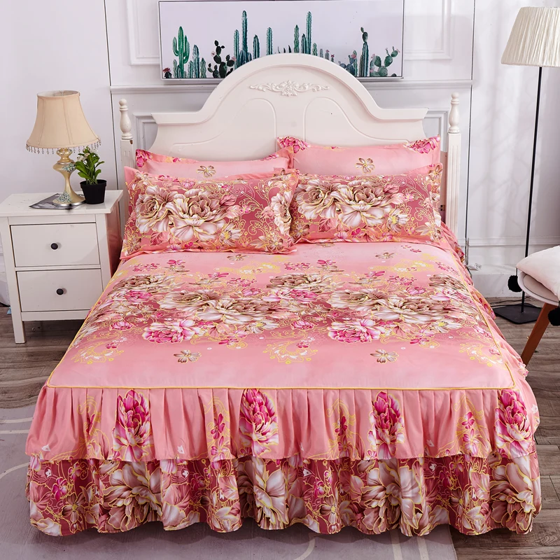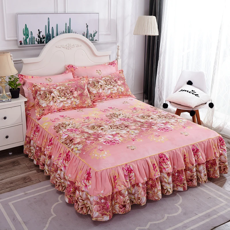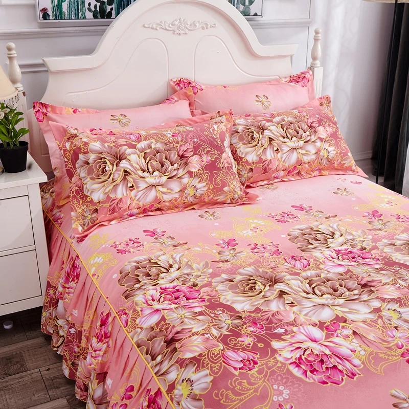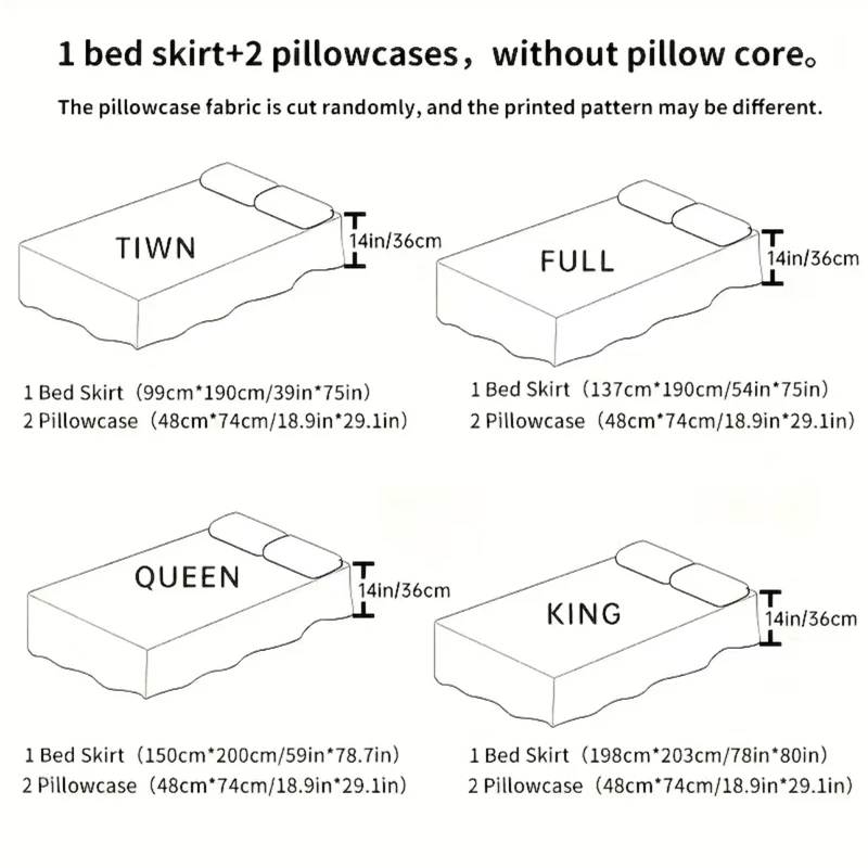 3PCS Bed Skirt Set (Bedsheet * 1 Pillowcase * 2, Coreless), Printed Bedskirt, All Season Universal Anti Slip