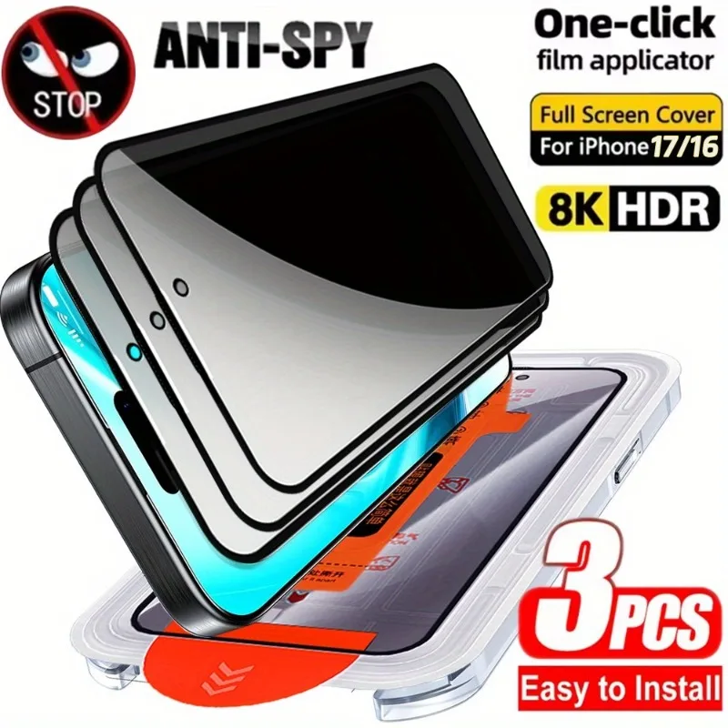 3Pcs Dust-Free Installation Privacy Screen Protector for iPhone 17 16 15 Pro Max 14 13 12 11 Pro Mini 16e Air X XR XS Max Glass