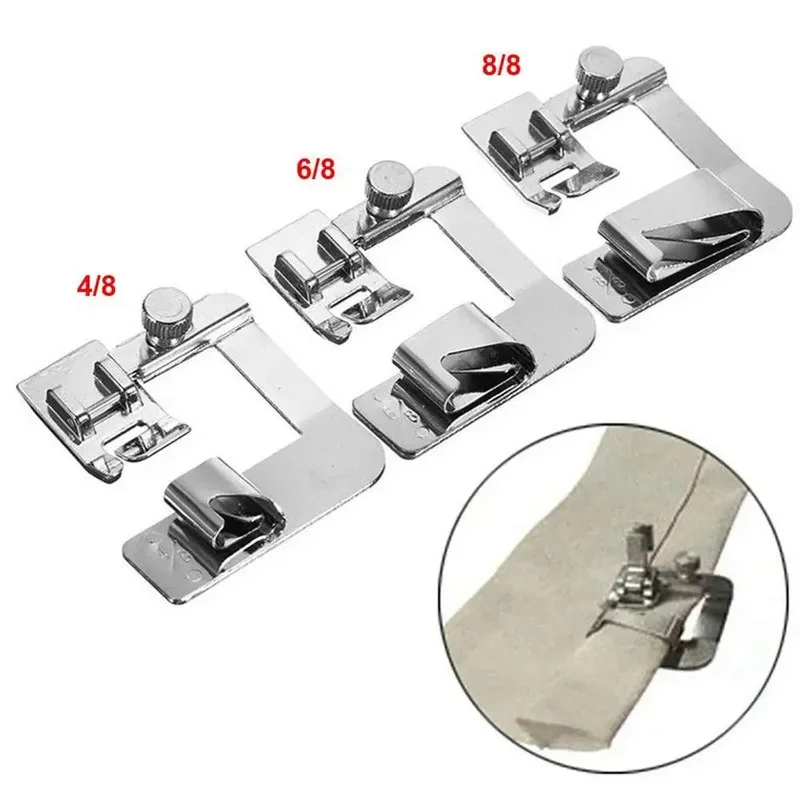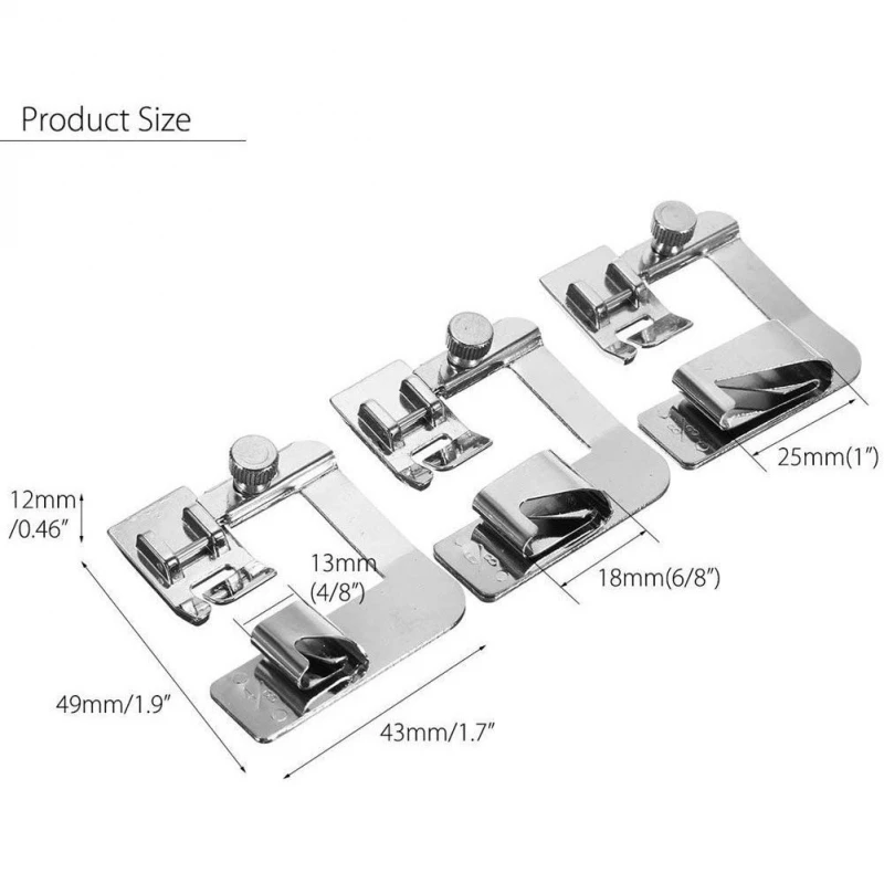 3Pcs/Set Home Sewing Machine Foot Presser Rolled Hem Feet for Brother Singer(Sliver) Dropship