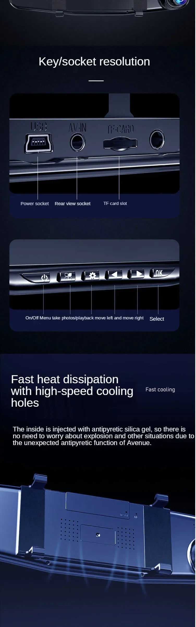 Size: 300*80*15mm Display screen: 4.3 inches Languages: English, Simplified Chinese, Traditional Chinese, French, Japanese, Spanish, Portuguese, Russian, etc. Shooting angle: 170° pixels: 12 million pixels: 1080P power supply: 12V Voltage: 5VRated Current: 1A/2A Transmission rate: 3M/SLoop Recording: When the capacity of the TF card is full, it will automatically overwrite the previous recording with a new file and keep the recording, except for locked files. Equipped with 170° camera to monitor the road, reduce blind spots, capture almost everything in front of the car, and effectively provide all-round protection for your car. <4.3 inch screen> The large LCD screen provides clearer videos and images. <1080P> Full HD large screen displays the road conditions in real time, giving you a perfect visual experience. <Small and light> Ultra-thin design, easy to install, use and carry. Main accessories: 1x host, 1x car charging power cord, 1x strap, 1x rear camera (optional). This type of driving recorder is simple to install. It can be directly fixed on the windshield. People who don't know how to install it can also do it. Imported quad-core processor, running smoothly, general list recording 300W pixels, high-definition front camera 1200W pixels. Rear camera with 300W pixels [Single shooting]: "Only shoot the front surface, loop video", [Double shooting]: "You can shoot front and rear, there are reversing images, the red line of the rear camera is connected to the positive electrode of the reversing light