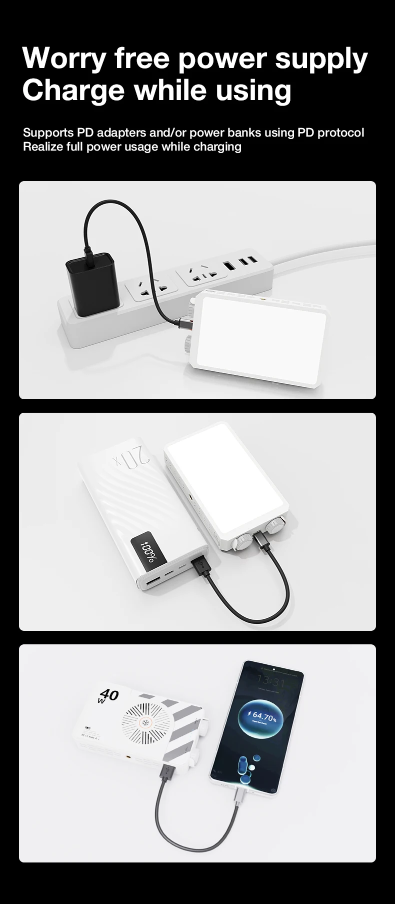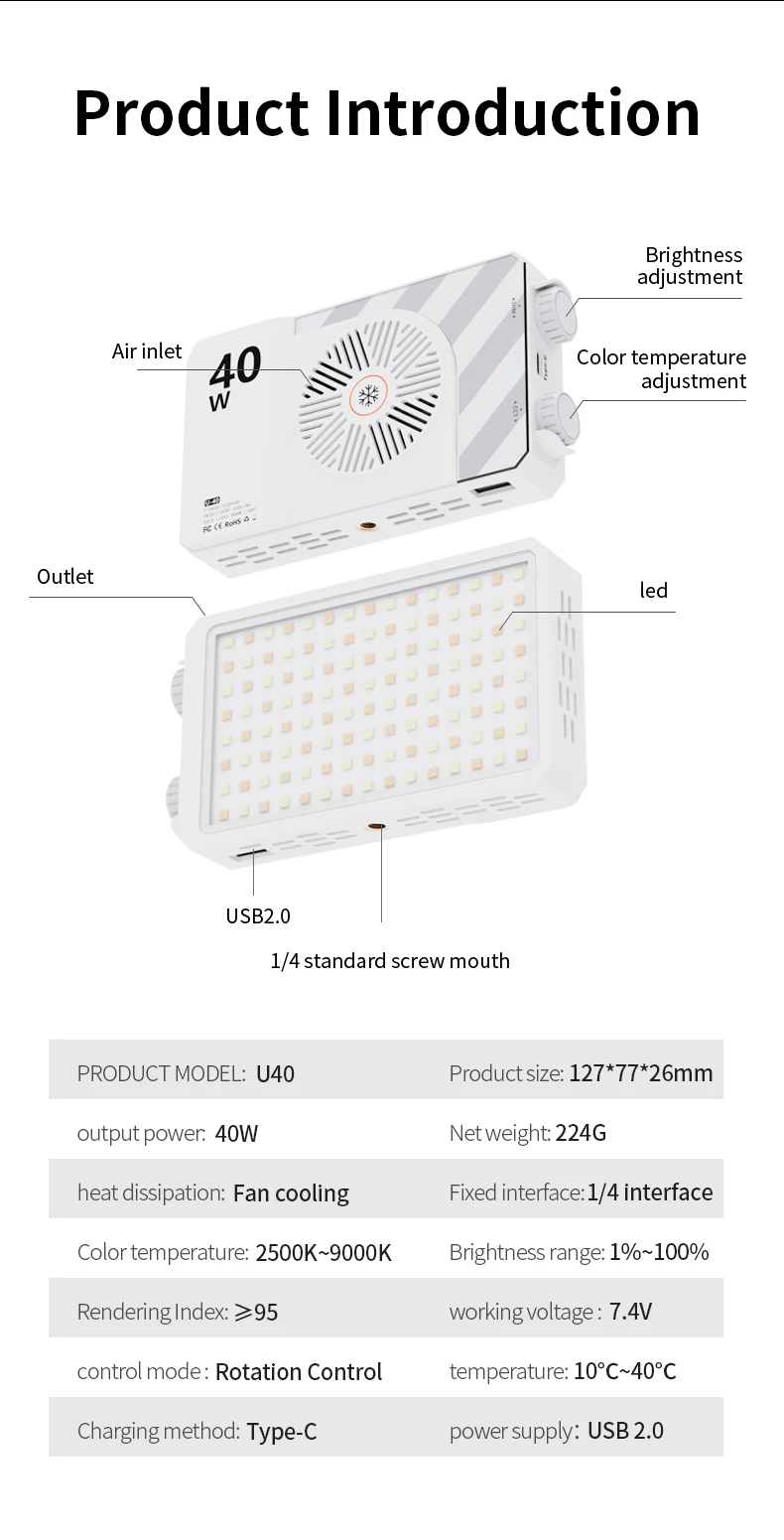 40W LED Camera Light CRI/TLCI 96+ 2700-6200K Bi-Color 6400mAh Photo Studio Video Lamp Handle Portable onCamera Photography Light